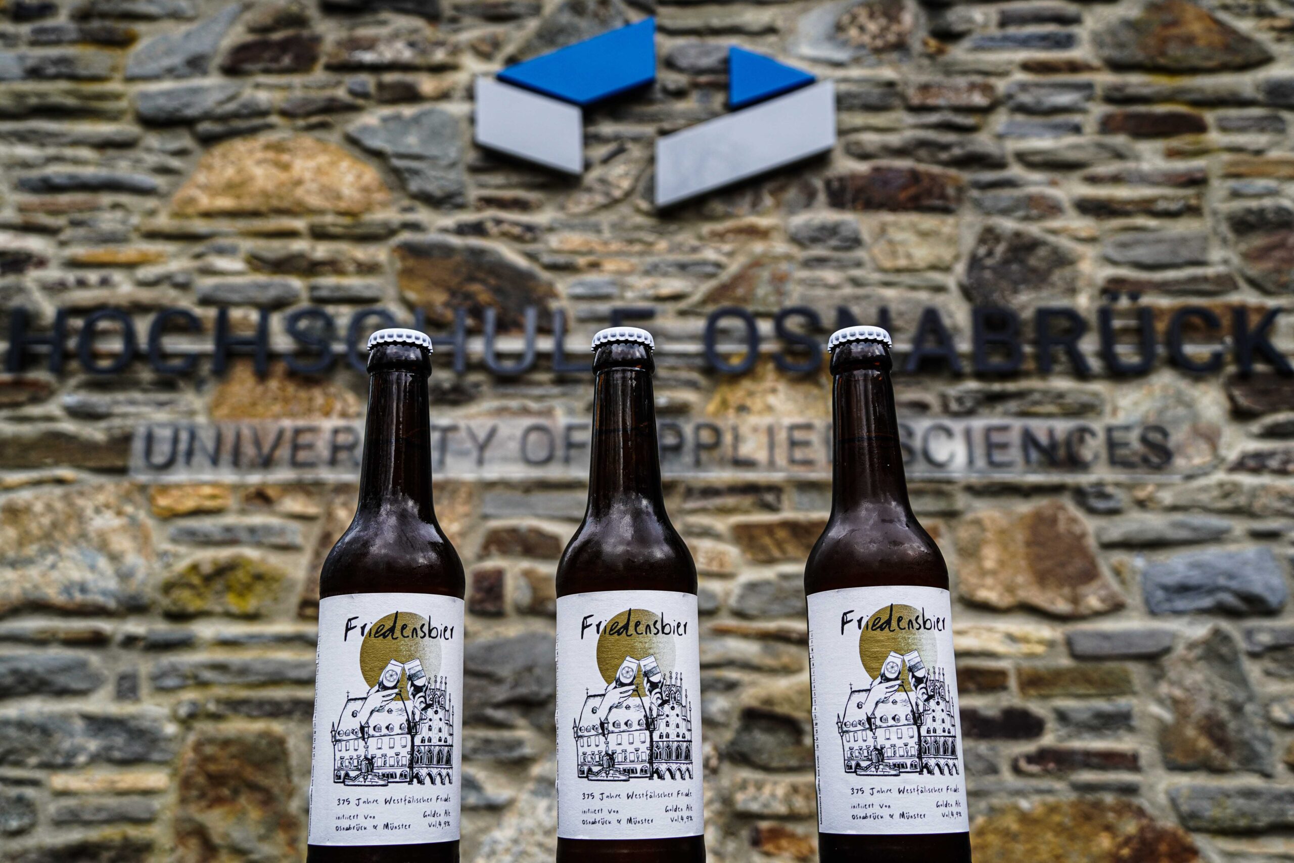 Anlässlich des Jubiläums „375 Jahre Westfälischer Friede 2023“ bringen die Hochschule Osnabrück und die FH Münster gemeinsam mit lokalen Brauereien ein „Friedensbier“ auf den Markt.