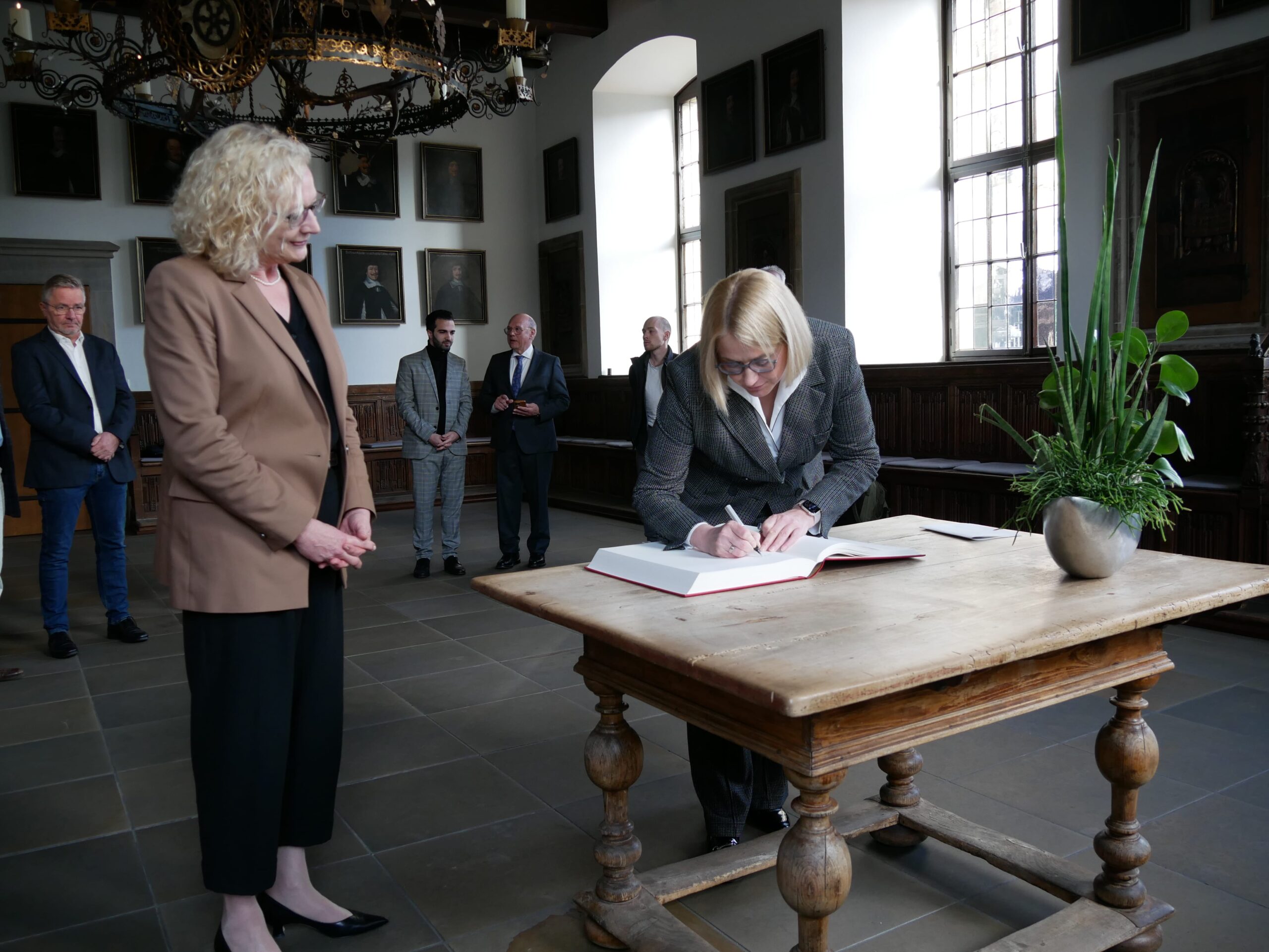 Heute Nachmittag wird sich vor dem Friedenssingen (16:30 Uhr auf dem Marktplatz) außerdem Alt-Bundespräsident Christian Wulff eintragen. Er ist nicht nur Ehrenbürger der Stadt Osnabrück, sondern auch Präsident des Deutschen Chorverbandes und damit Schirmherr des Friedenssingens.