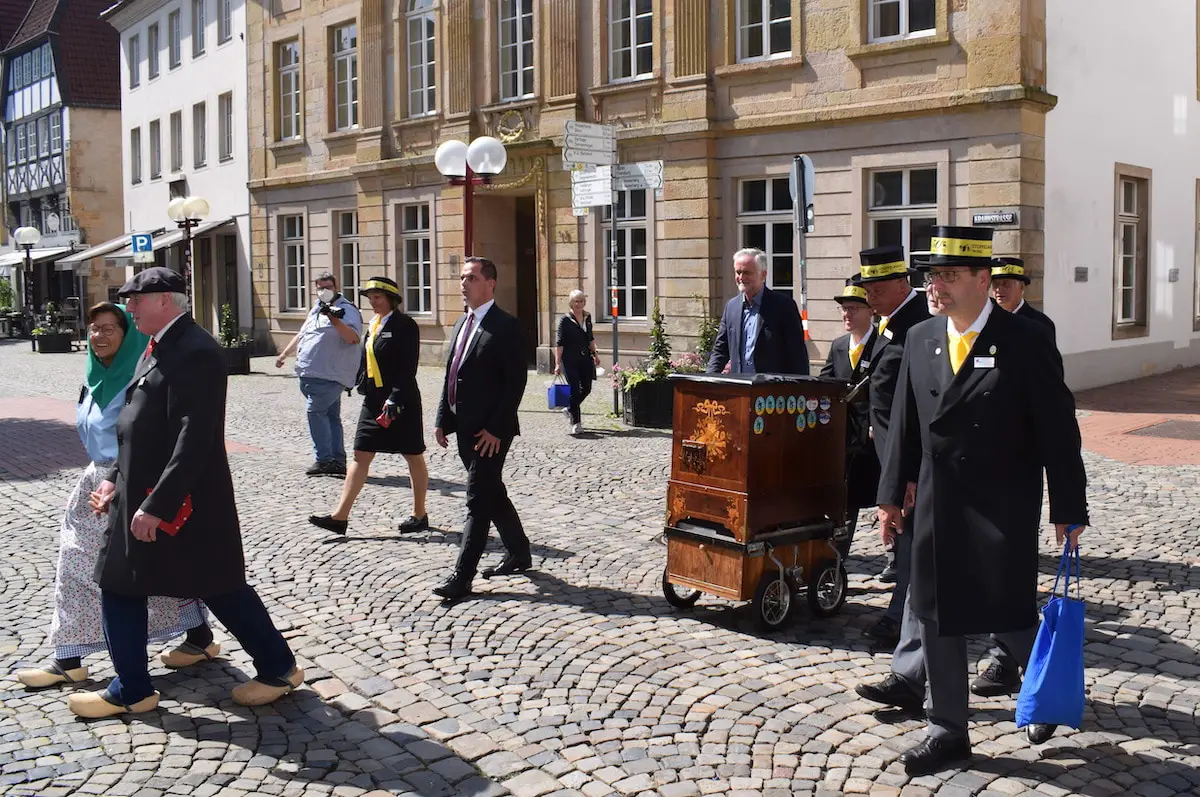 Die Orgelspieler ziehen gemeinsam mit dem Osnabrücker Oberbürgermeister Wolfgang Griesert durch die Altstadt.