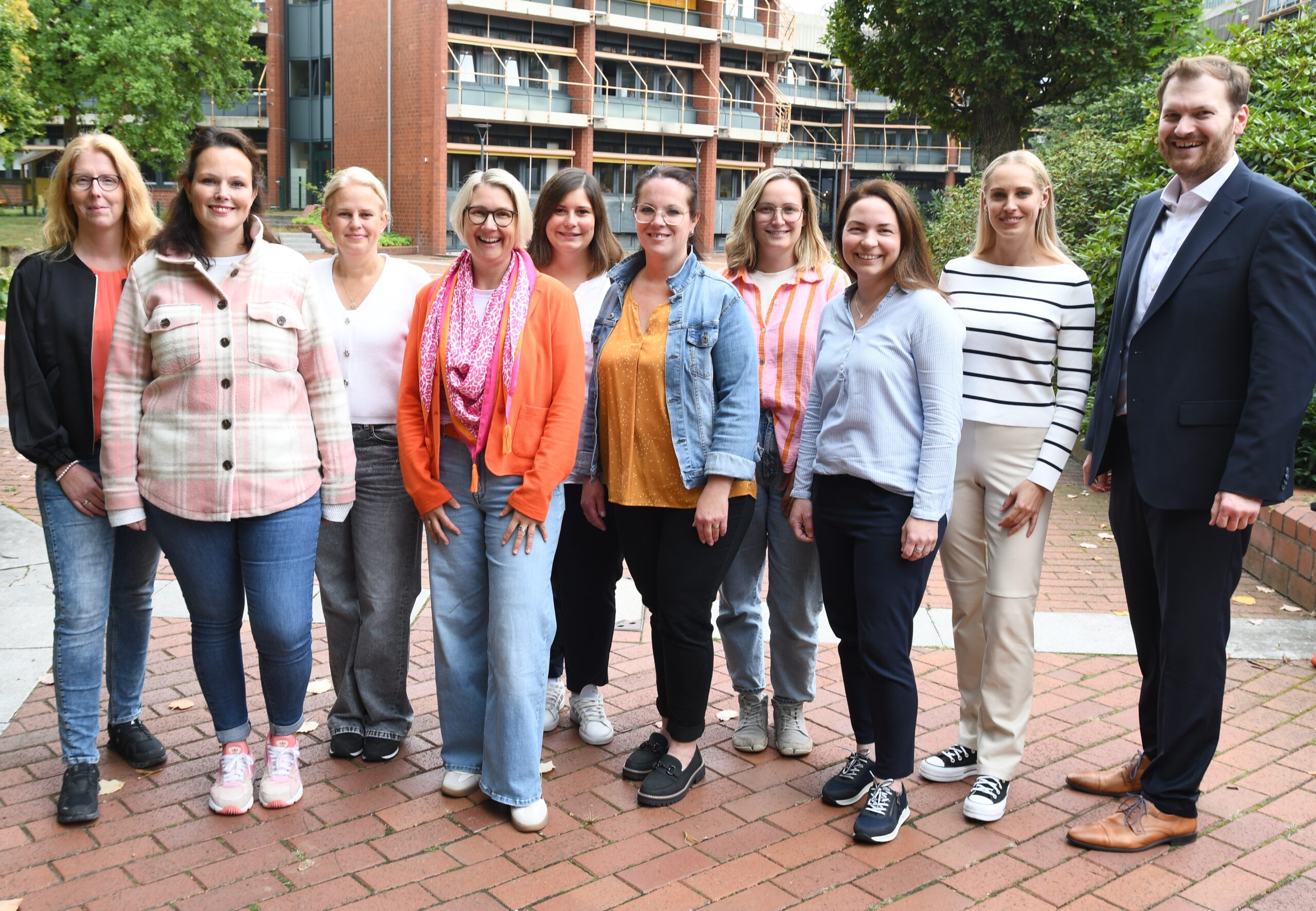 Bildunterschrift zum Titelbild: Daniela Künne (von links, Still- und Laktationsberaterin) und die Stillspezialistinnen Lisa Marie Bennett Ribeiro, Karoline Plischke, Nicole Werries, Nathalie Reddig, Lena Viehmeyer, Sara Pöttker, Katja Plietz mit Julia Harnack vom Gesundheitsdienst für Stadt und Landkreis Osnabrück und Kreisrat Malte Stakowski.
