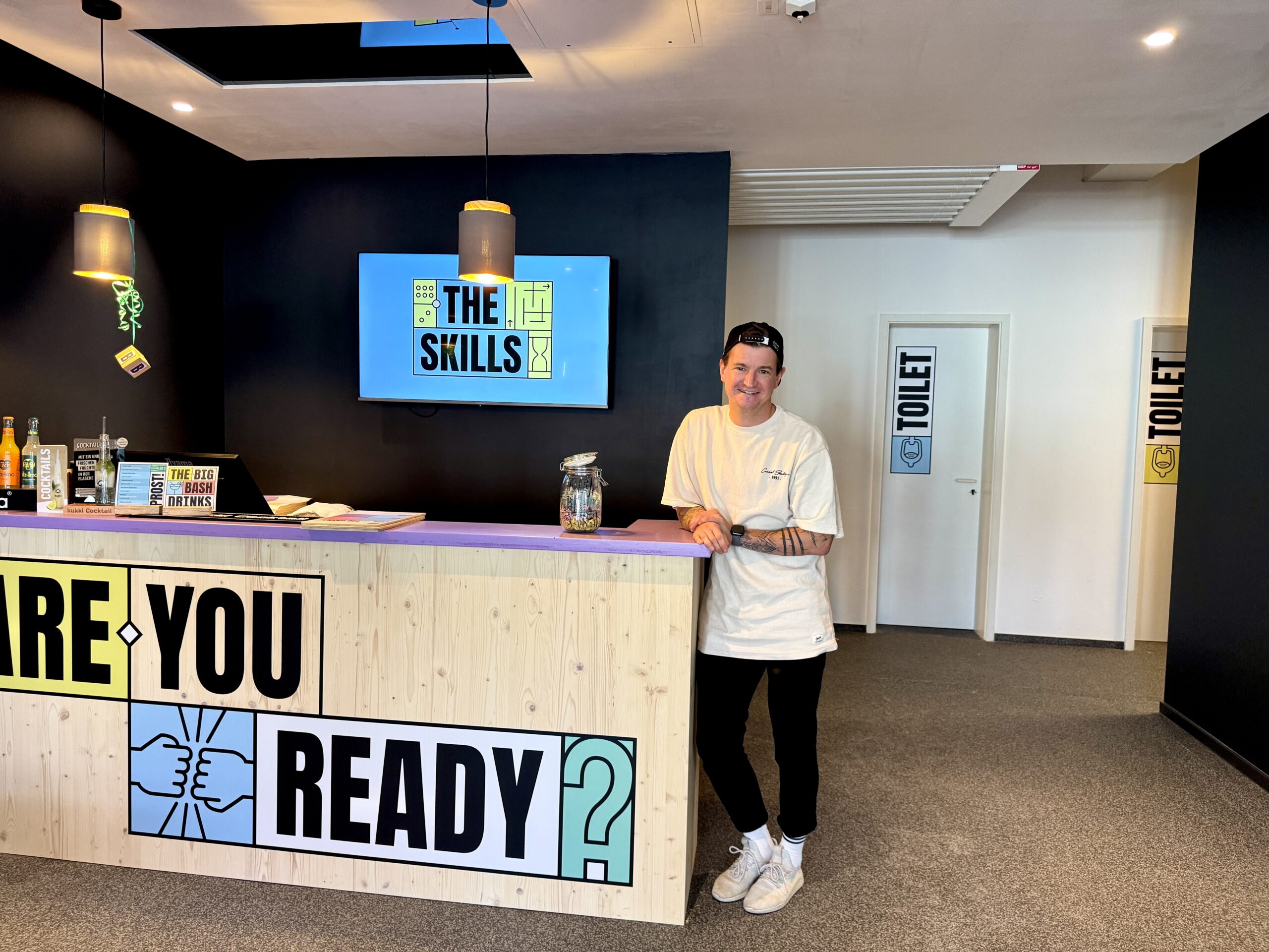 Wer sich für ein spannendes Team-Event bei The Big Bash entscheidet, kann sich auf zweieinhalb Stunden Spaß, Herausforderung und Abwechslung einstellen. In jedem der drei Räume – The Skills, The Brain, The Action – verbringen die Teilnehmenden etwa 45 Minuten und es gibt auch eingeplante Pausen. Ein Moderator begleitet die Gruppe die gesamte Zeit, leitet die Spiele an und trägt die Punkte ein. Nacheinander werden verschiedene Spiele gespielt. „Wir haben jetzt schon mehrere Spiele und wollen in einem Jahr noch flexibler sein. Wir wollen auch, dass unsere Gäste wiederkommen und etwas Neues spielen können“, erklärt Hartstang.