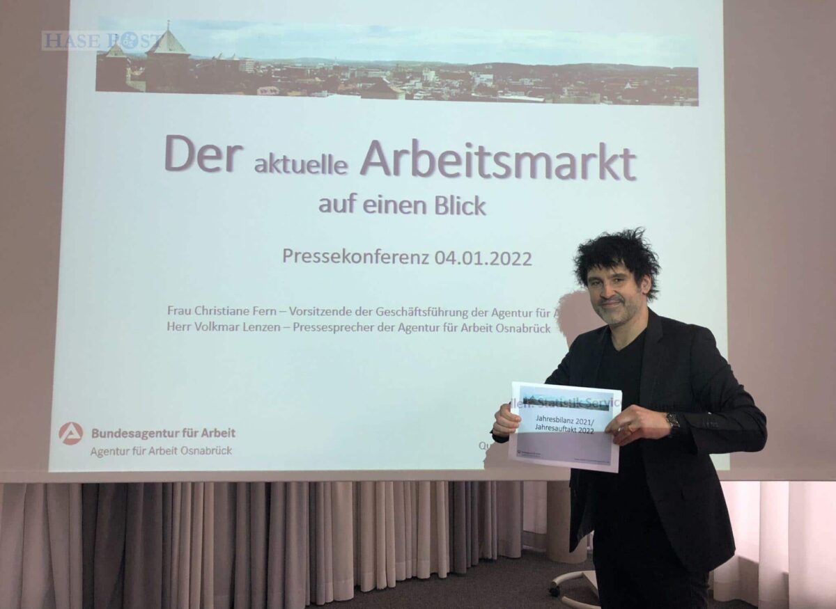 „Obwohl die wirtschaftlichen Rahmenbedingungen derzeit nicht einfach sind, bleibt der Arbeitsmarkt in der Region insgesamt stabil“, resümiert Volkmar Lenzen, Pressesprecher der Agentur für Arbeit Osnabrück in einer Pressekonferenz und führt aus: „Viele Unternehmen müssen sich weiterhin mit Problemen in den Lieferketten auseinandersetzen, zudem verschärfen sich die Einschränkungen im Alltag durch die vierte Welle der Corona-Pandemie. Die Folge ist daher auch, dass wieder mehr Kurzarbeit angezeigt wird.“
