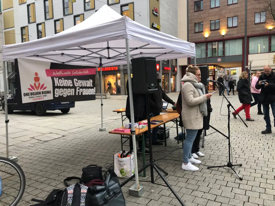 Seit 2012 werden jährlich am 14. Februar alle Menschen dazu aufgerufen, sich gegen diese Gewalt zu erheben und in Form einer Protestaktion gemeinsam zu tanzen. Die Aktion zeigt die Solidarität mit allen Gewaltbetroffenen. Sie ist Ermächtigung, Stärke und Gemeinschaft im Tanz gegen Gewalt über alle Grenzen hinweg.