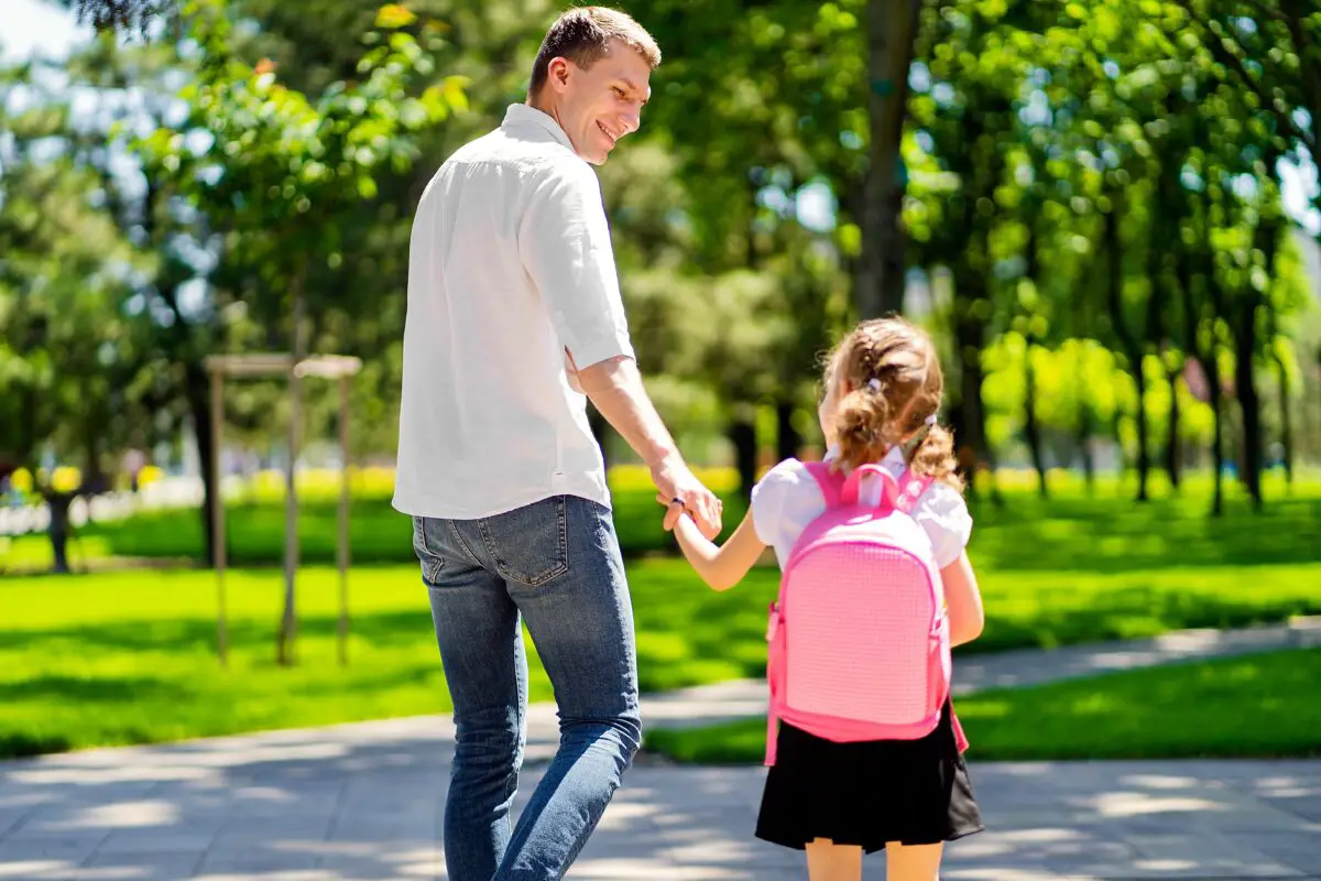 Vater bringt Tochter zur Schule (Symbolbild)
