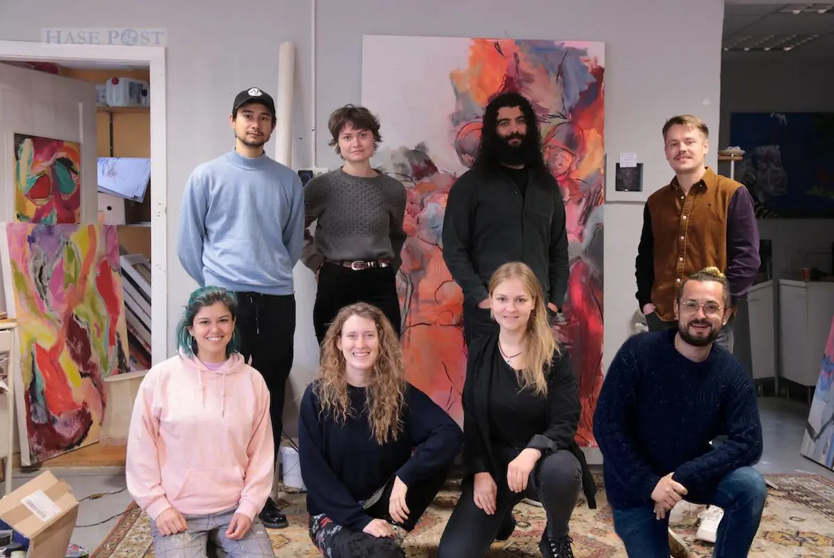 Derzeitige und neue Künstlerinnen und Künstler im Artelierhaus an der Hasemauer: (obere Reihe von links) Azim F. Becker, Ronja Bredenförder, Kaan Ege Önal, Jakob Schöning sowie (untere Reihe von links) Elena Kok, Melanie Harder, Eva Lause und Alexej Eisner / Foto: Privat