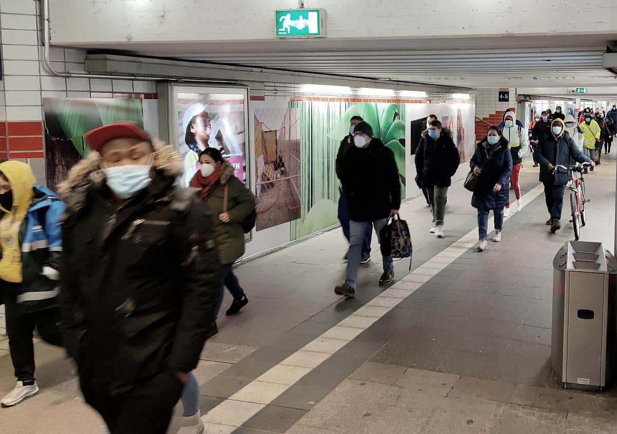 Foto: Pendler mit Corona-Masken, über dts Nachrichtenagentur