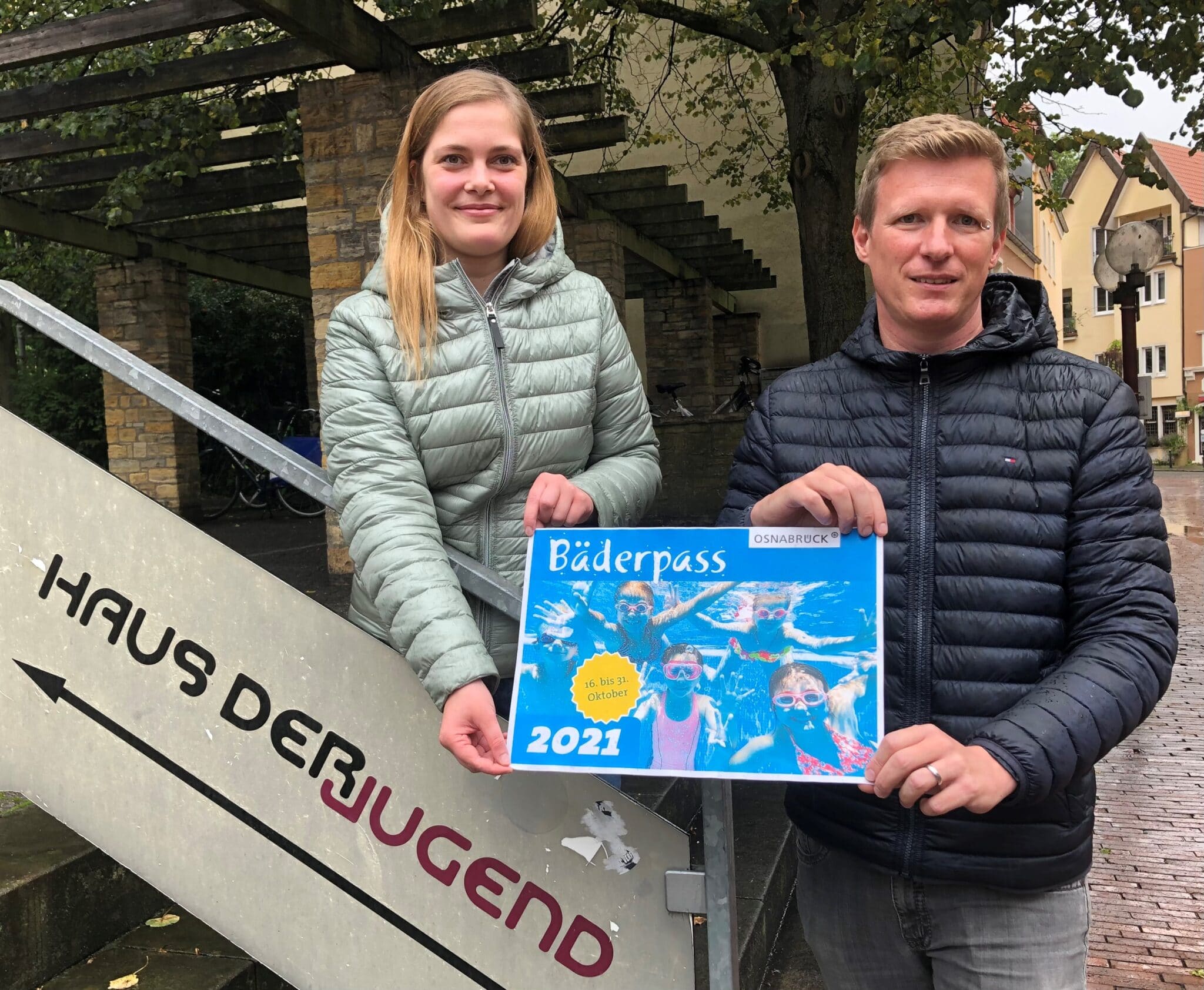 Nils Bollhorn, Leiter des Fachdienstes Jugend, und Franziska Menkhaus aus dem Ferienpassbüro, haben den Bäderpass für die Herbstferien ins Leben gerufen. /Foto: Ina Krüer