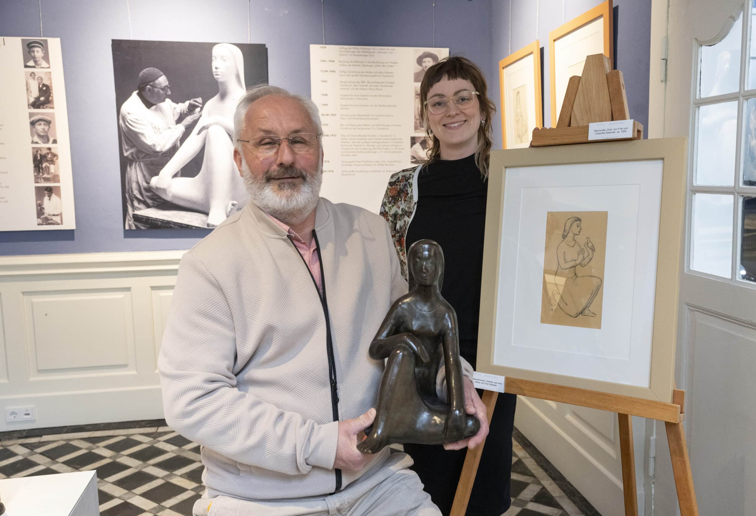 Fritz Szalinski und das kreiseigene Museum sind bereits über Jahrzehnte verbunden. Zum 50. Jubiläum zeigte des damalige Kreismuseum die letzte große Ausstellung des Künstlers. Auch zur Jubiläumsausstellung 2024 zum 100-jährigen Bestehen der Kultureinrichtung waren Skulpturen des Bildhauers vertreten. Im Blauen Salon ist nun eine bemerkenswerte Auswahl an Skulpturen und Skizzen zu sehen.