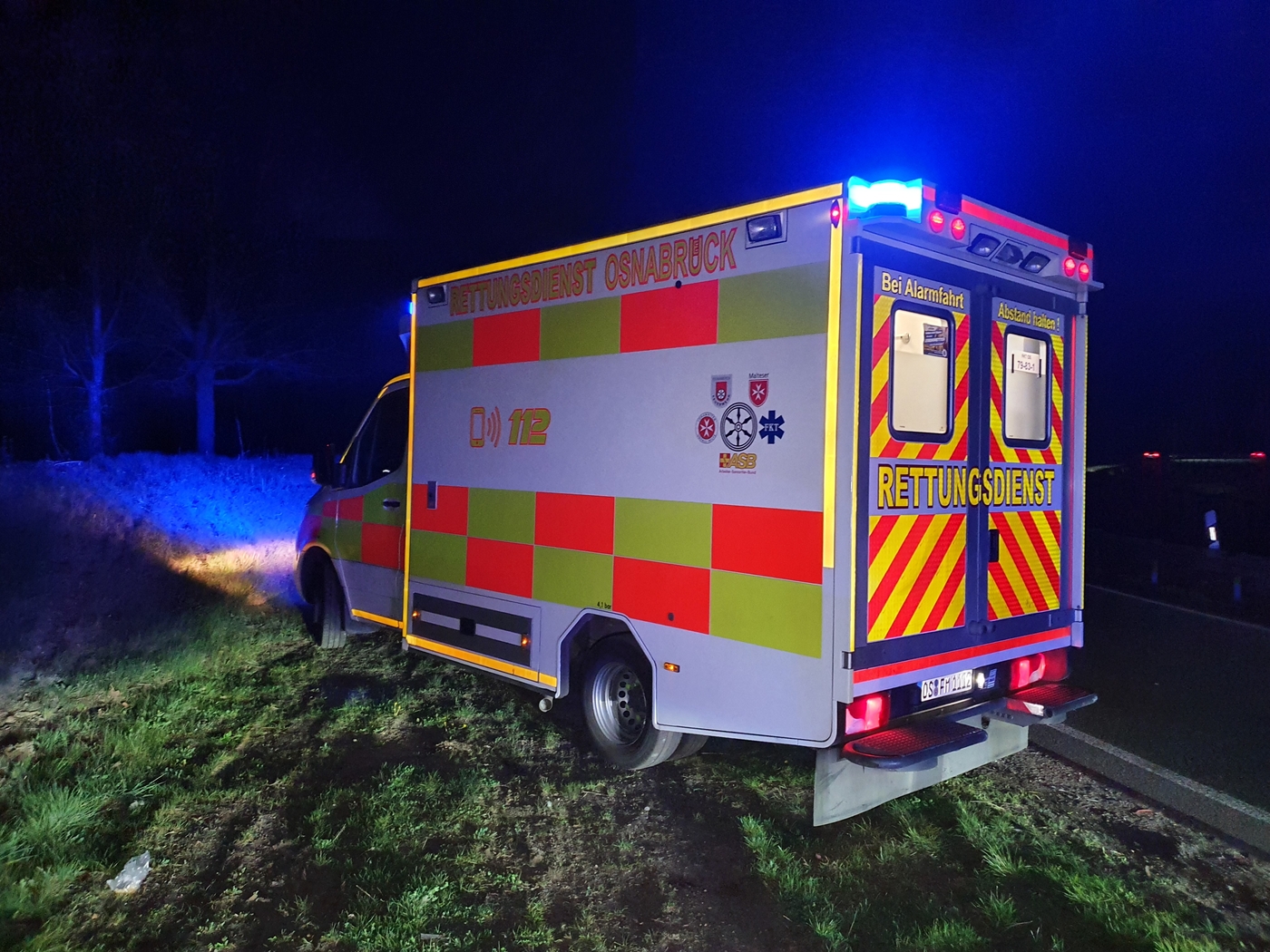 Ein Auto war am Samstagabend (5. April 2025) zwischen der A33 und A30 am bekannten Unfallschwerpunkt aus der Spur geraten. Aufgrund ungenauer Ortsangaben, war die Unfallstelle zunächst bei Nahne, dann bei Natbergen vermutet worden.