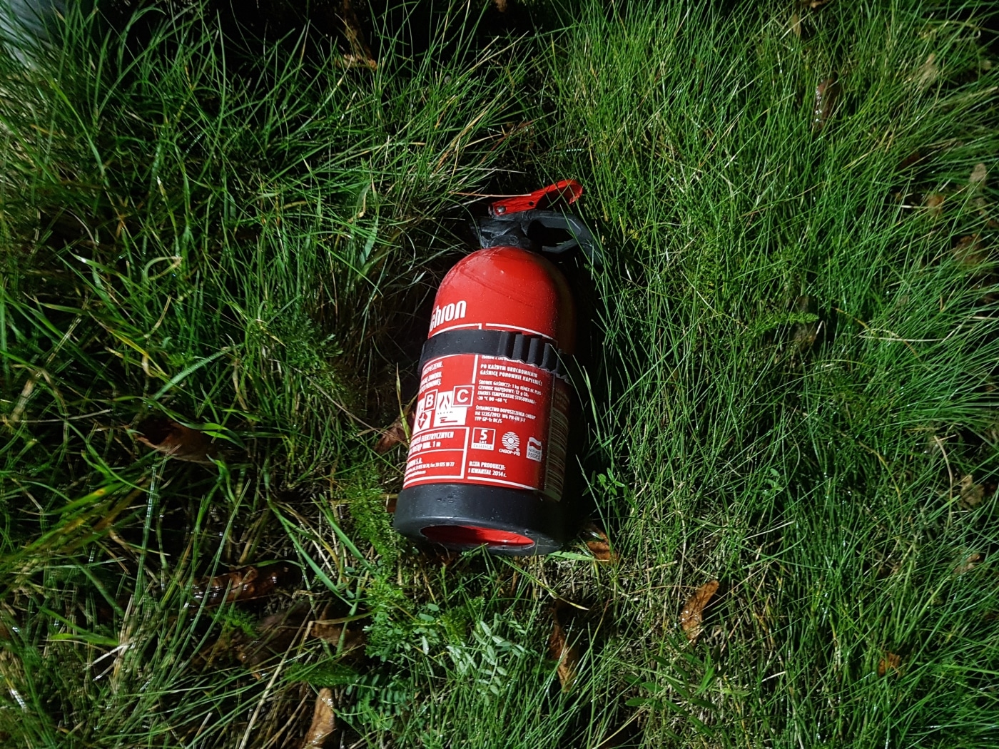 Ersthelfer halten Brand mit Feuerlöschern auf