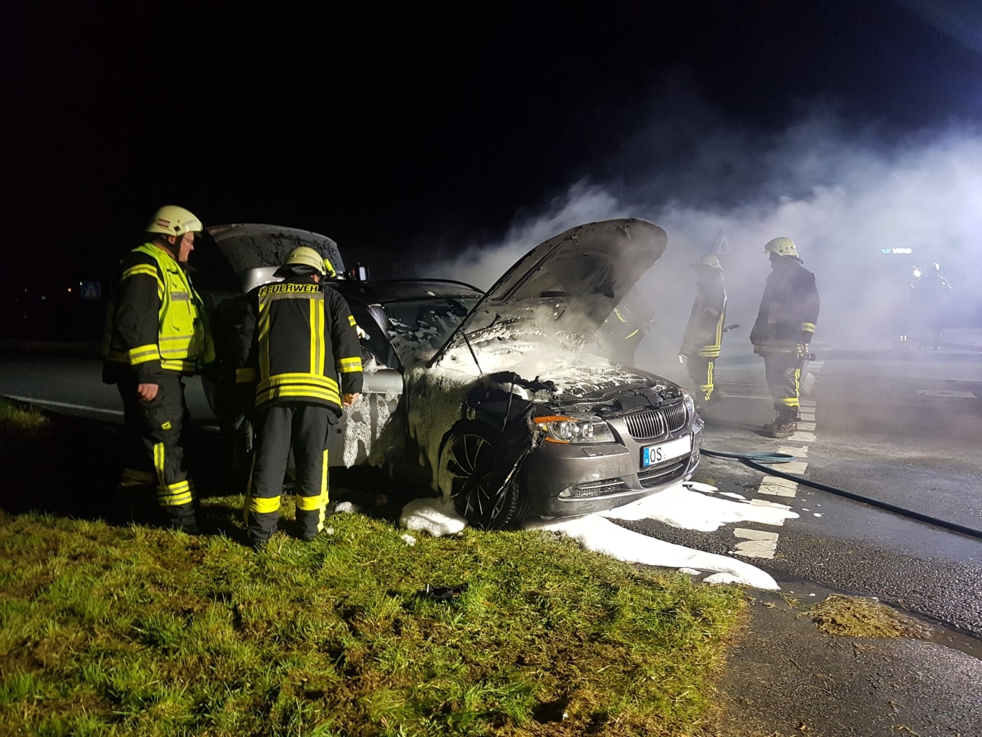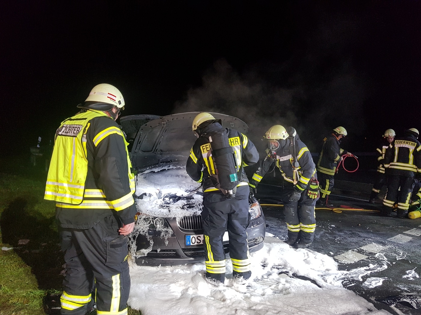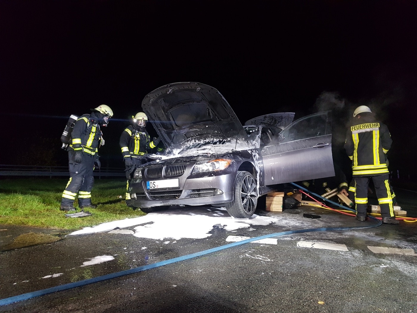 Auto fängt auf der Autobahn A33 bei Dissen Feuer