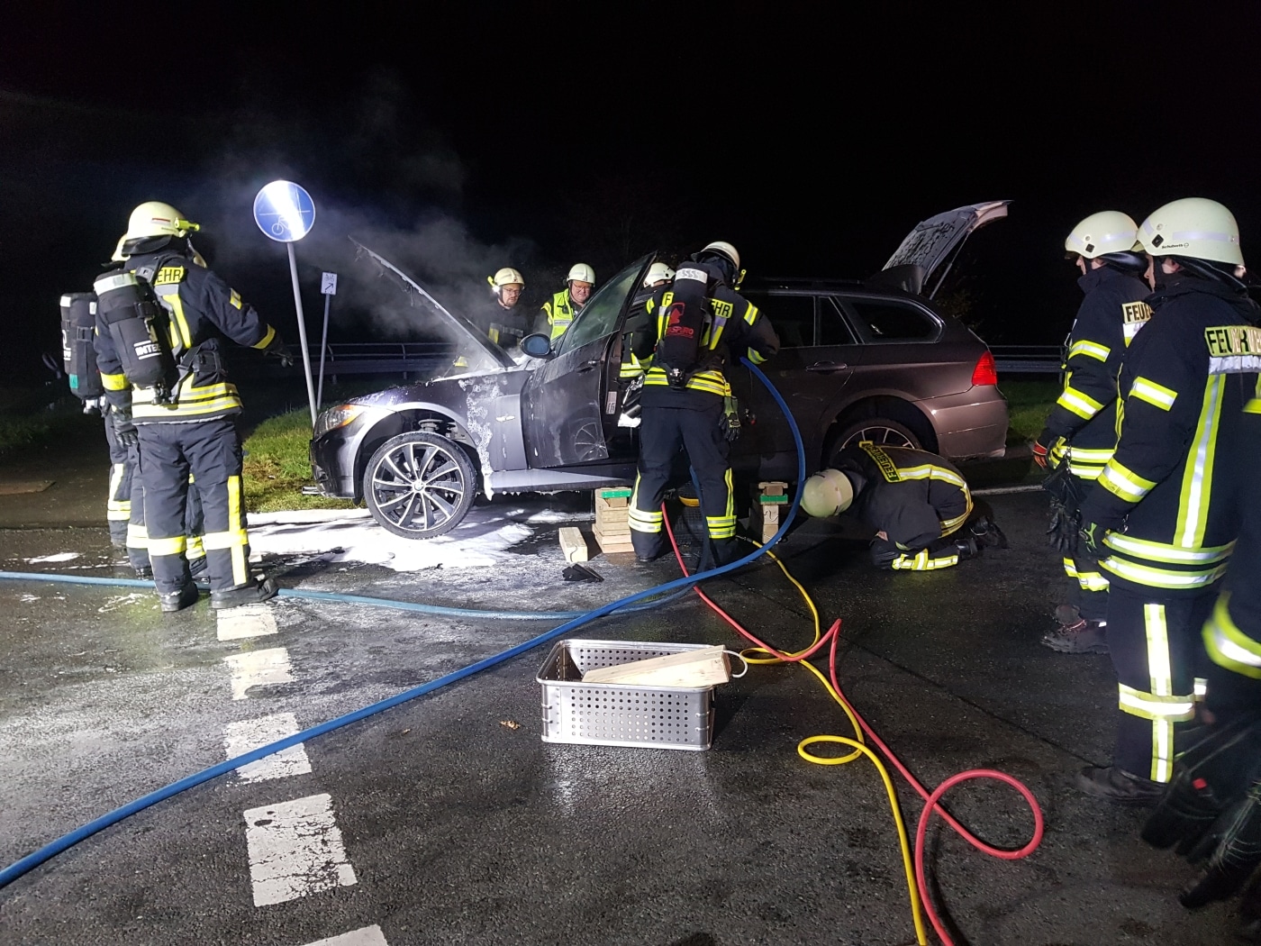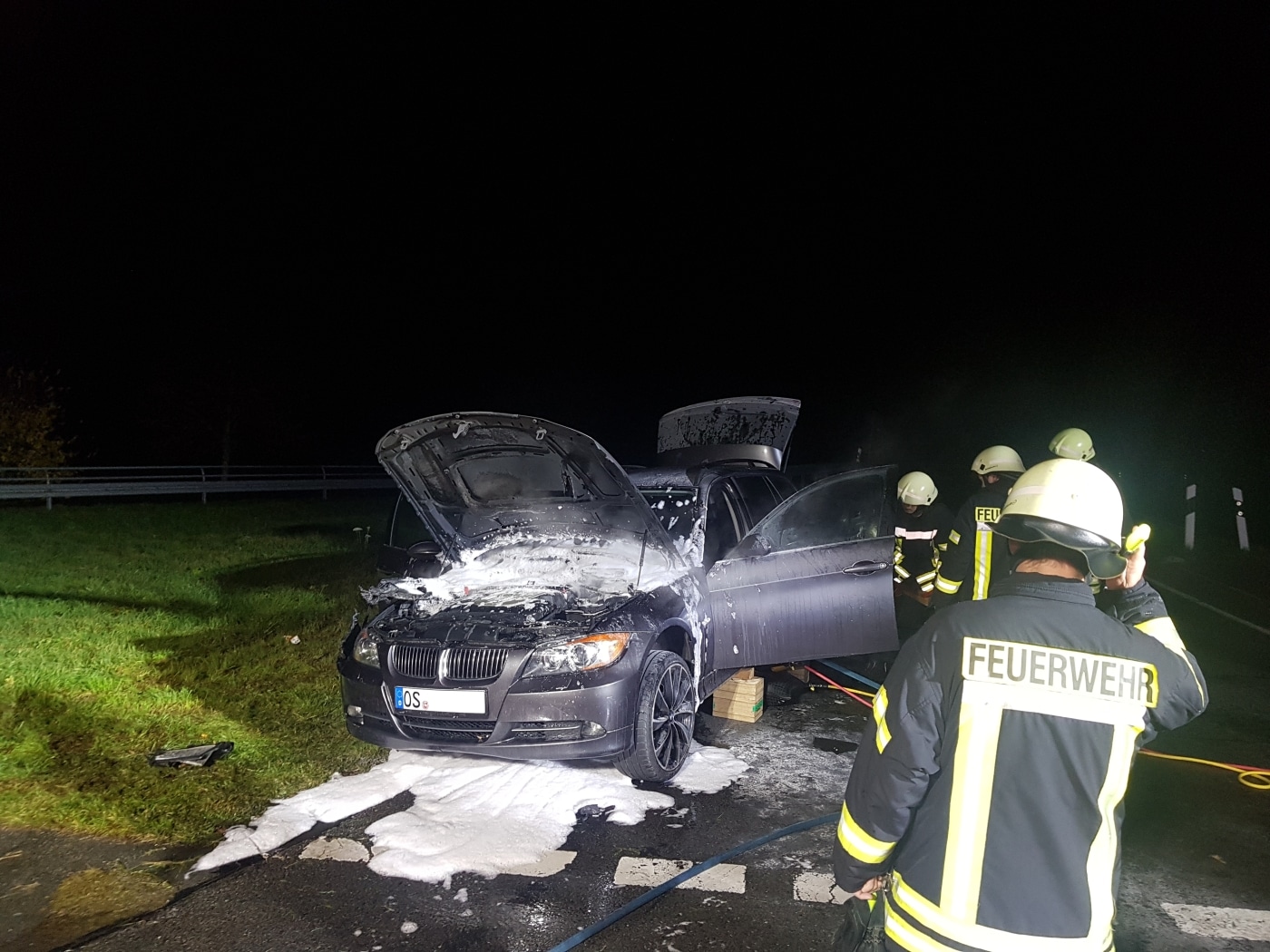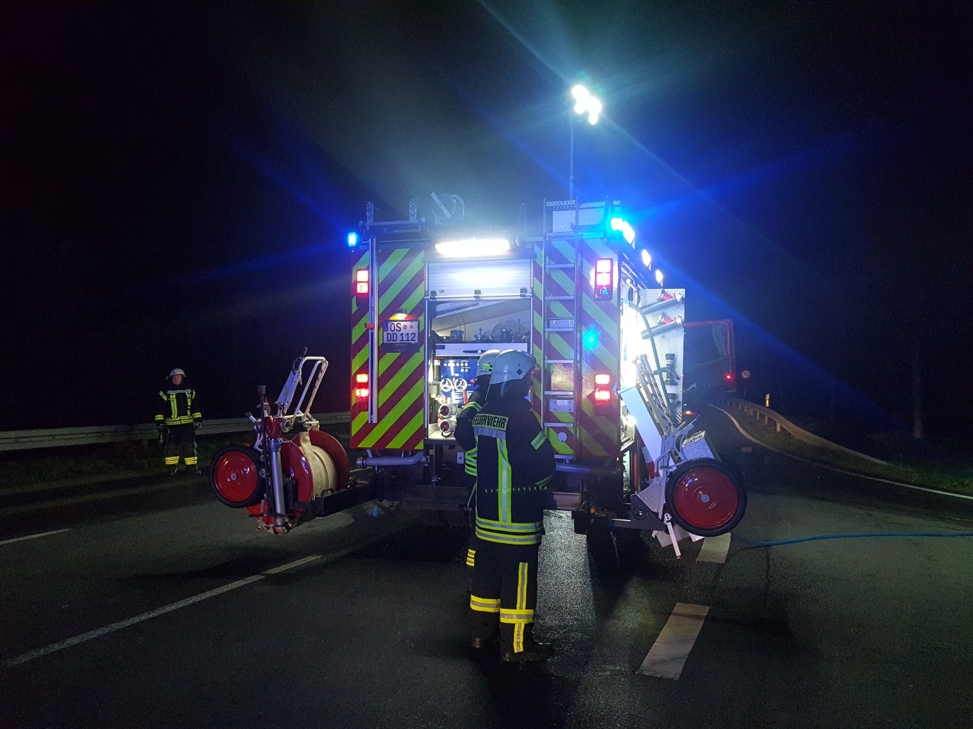 Am heutigen Dienstagabend (16.11.2021), kam es auf der Bundesautobahn A33 bei Dissen im Landkreis Osnabrück zu einem PKW-Brand. Umfangreiche Löscharbeiten waren nötig.