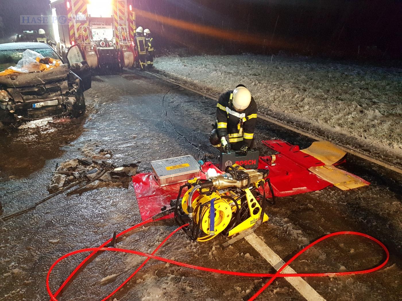 Am frühen Montagmorgen (31.01.2022) kam es auf einer Landstraße in Dissen zu einem schweren Verkehrsunfall. Zwei Personen wurden verletzt.