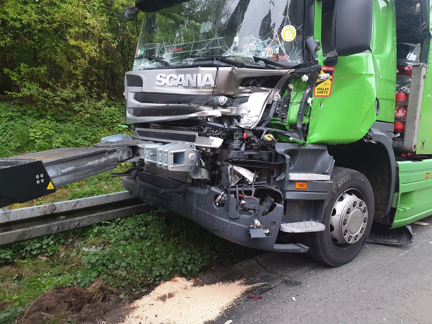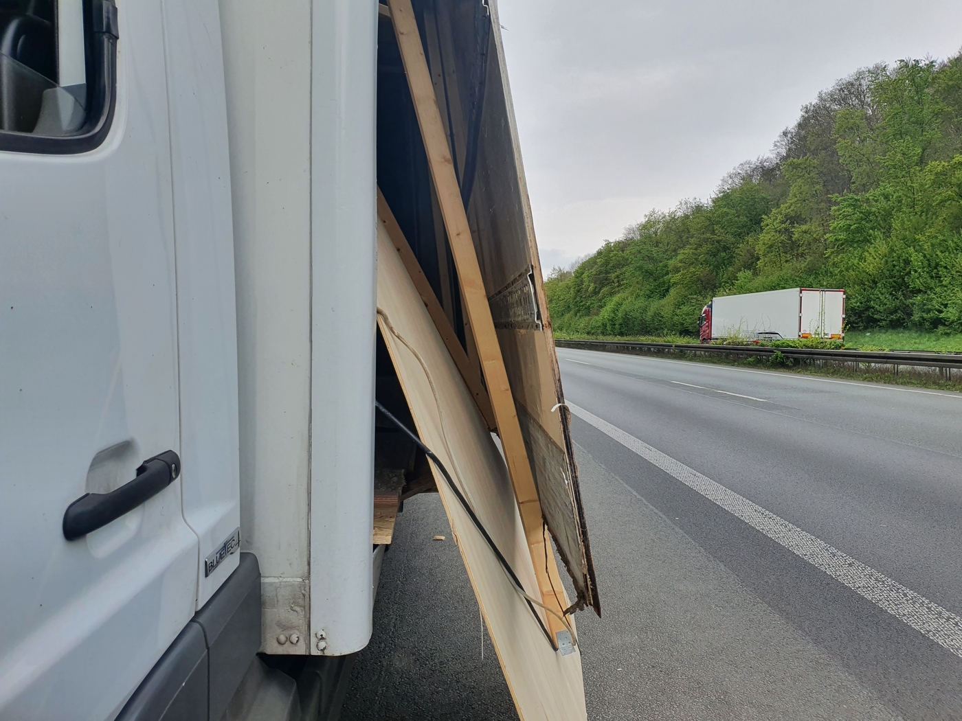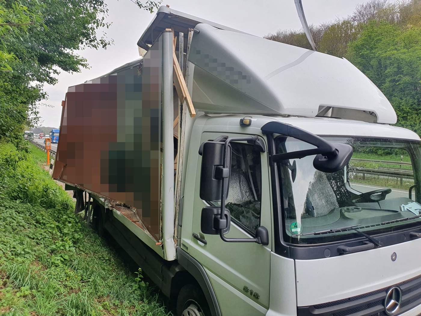 Ein Bergungsunternehmen rückte an, um die beiden anderen LKW von der Autobahn zu beseitigen. Der Aufbau des 7,5-Tonners wurde mit Spanngurten gesichert, sodass er bei der anschließenden Fahrt nicht auseinander brach. Mit einem schweren Bergefahrzeug wurde der Autotransporter aus dem Grünstreifen geholt. Dabei musste er angehoben und von den Bergungsprofis vorsichtig über einen Befestigungspfahl der Leitplanke geschwenkt werden, um den Dieseltank nicht zu beschädigen.