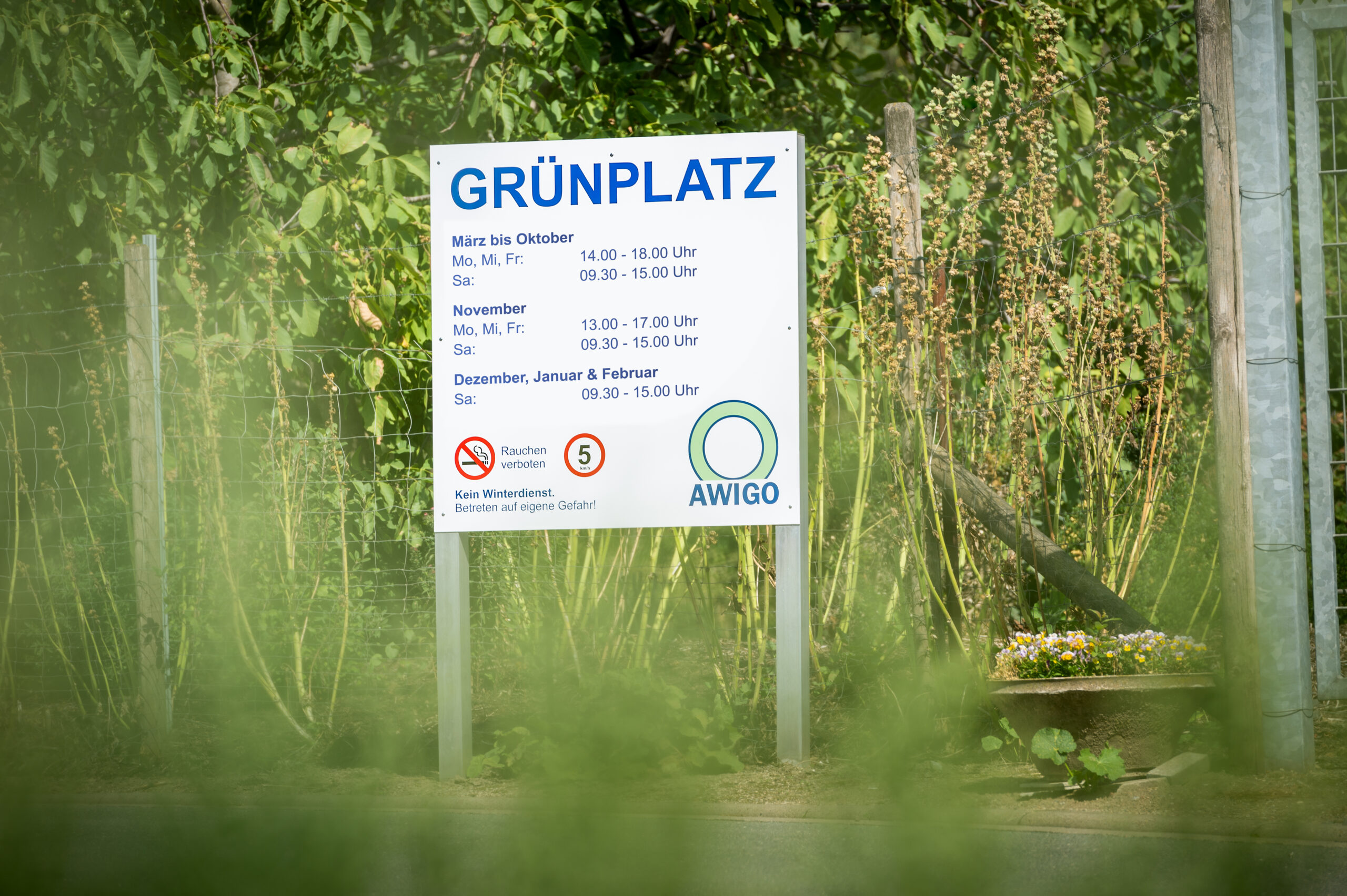 Montags, Mittwochs und Freitags zwischen 14 und 18 Uhr sowie Samstags von 9:30 bis 15 Uhr sind die Tore der Grünplätze geöffnet. Es können diverse Abfälle wie kompostierbare Grünabfälle, Altkleider, Altmetalle und vieles mehr abgegeben werden. Hobbygärtnerinnen und -gärtner können auch regional aufbereiteten AWIGO-Humus und -Mulch aus den gesammelten Grünschnitten erwerben. Insgesamt gibt es 27 Grünplätze im Landkreis.
