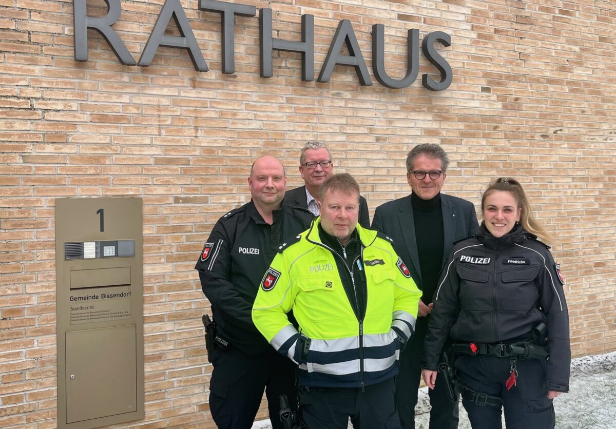 „Natürlich können wir nicht immer helfen, aber man darf uns immer gerne um Rat fragen“, fügt Friedrichs hinzu. Mit lobenden Worten über die Zusammenarbeit mit der Gemeinde Bissendorf, insbesondere dem Einwohnermeldeamt, verabschiedeten sich die drei Polizeibeamtinnen und -beamten aus dem Rathaus. In Zukunft soll es an geeigneten Schnittstellen, beispielsweise im Bereich Prävention oder Aufgaben der Gemeindefeuerwehr eine noch engere Vernetzung geben. Kontakt zur Polizeistation Bissendorf können Bissendorfer Bürgerinnen und Bürger unter Telefon 05402 98549-0 oder per E-Mail aufnehmen.