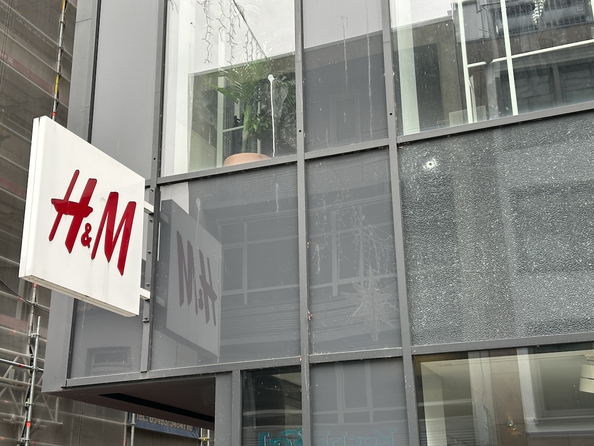 So viel steht inzwischen fest: Es war im Wortsinne keine Schießerei, es fiel nur ein einzelner Schuss. Der jedoch hatte es in sich, denn er traf und verletzte nicht nur das Opfer an der Hand, sondern durchschlug im Anschluss auch noch eine gläserne Fassadenplatte am H&M Gebäude (siehe Titelfoto).
