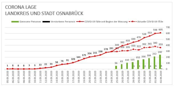 Corona-Infektionszahlen, 2. April 2020, Stand 8:58 Uhr. / Quelle: Stadt und Landkreis Osnabrück.
