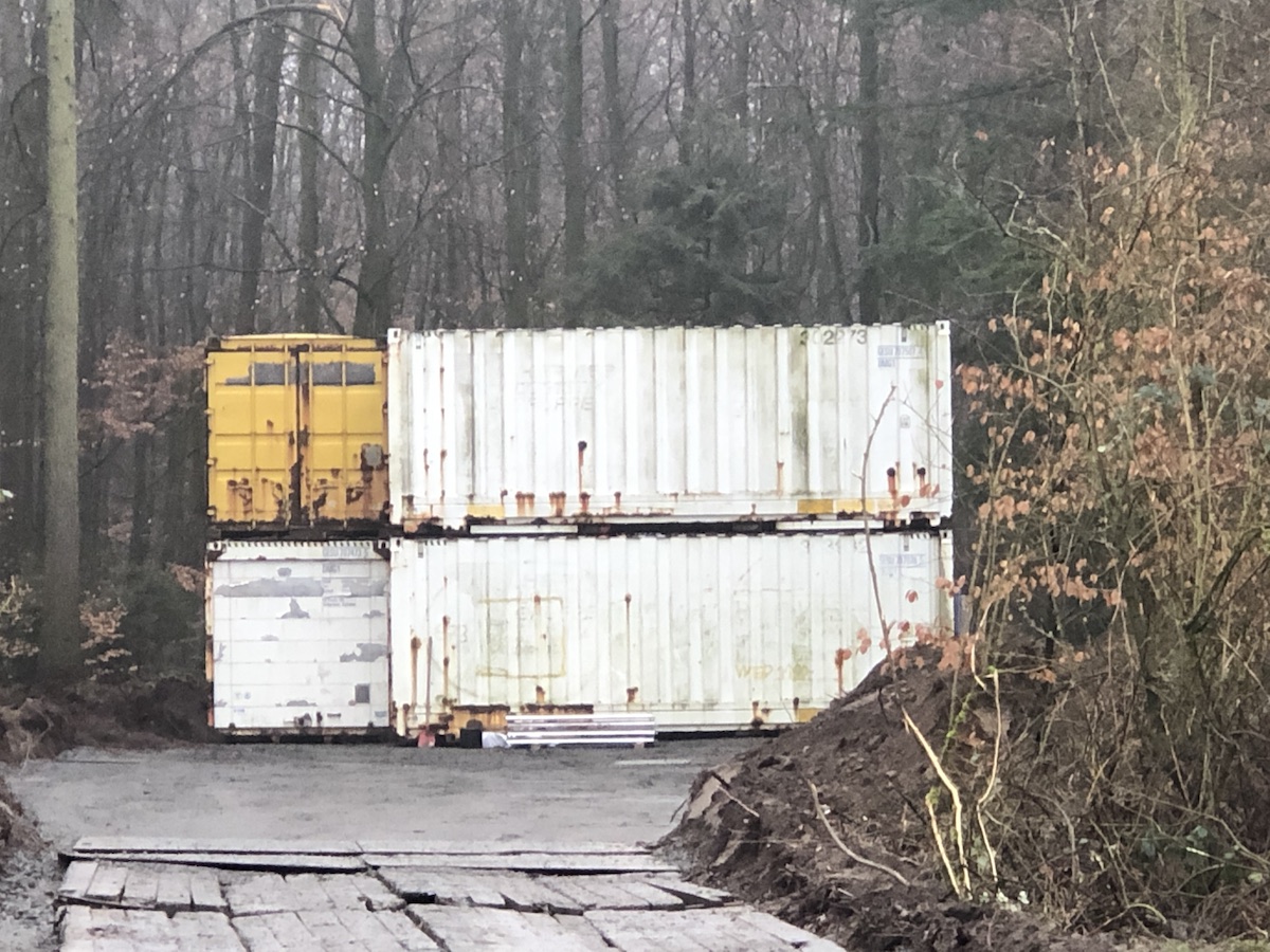 In den vergangenen Tagen wurde eine Schneise in die anliegenden Kleingärten geschlagen und es wurden einige alte Überseecontainer aufgestellt, die bis Donnerstagvormittag mit Wasser gefüllt werden.