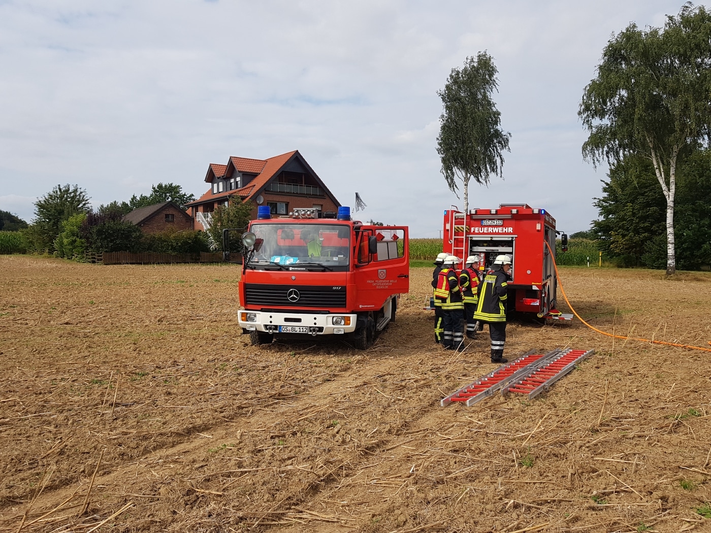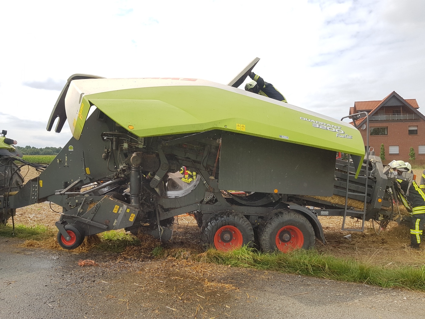 Am Nachmittag des Mittwoch, den 25.08.2021, kam es in Melle-Neuenkirchen im Landkreis Osnabrück zu einem Feuer in einer Strohballenpresse.