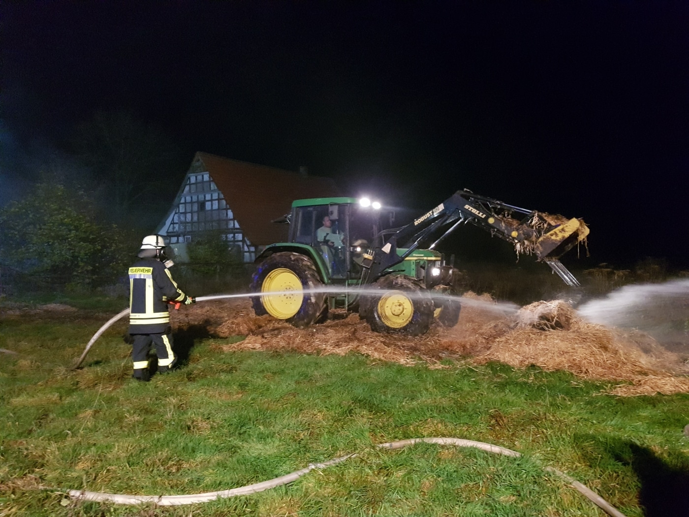 Beim Eintreffen brannte Stroh, das unter einem halboffenen Abdach gelagert war. Auf rund 60 Kubikmeter belief sich die erste Schätzung.
