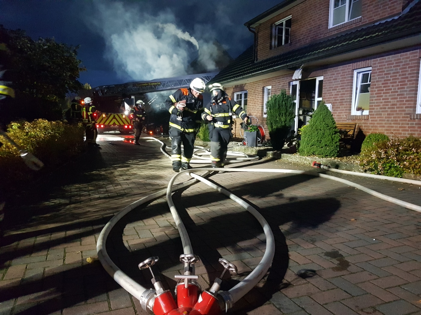 Die Ortsfeuerwehren Engter, Bramsche und Epe rückten mit rund 40 Einsatzkräften an. Drei Trupps unter schwerem Atemschutz bekämpften das Feuer mit zwei Strahlrohren im Inneren des Hauses. Mit Tanklöschfahrzeugen und Hydranten stellten die Feuerwehrleute die Löschwasserversorgung her.