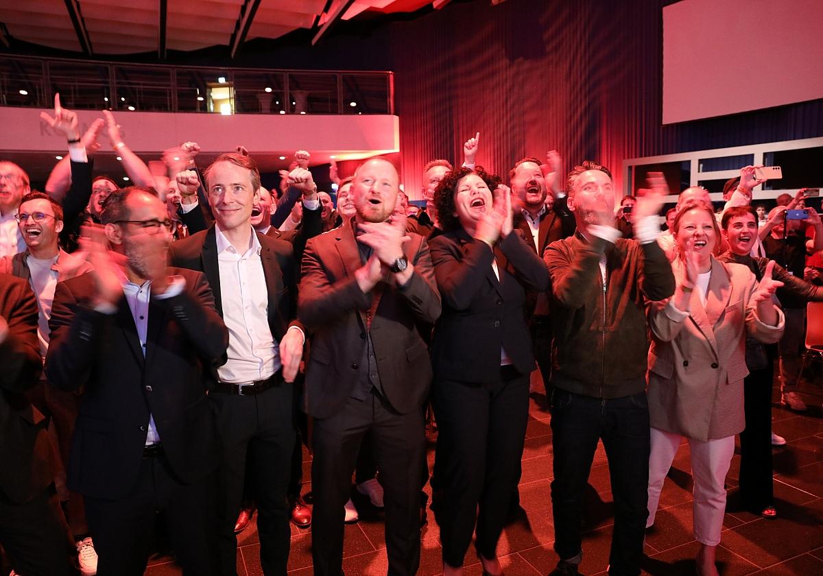 18-Uhr-Prognose auf BSW-Europawahlparty am 09.06.2024 / via dts Nachrichtenagentur