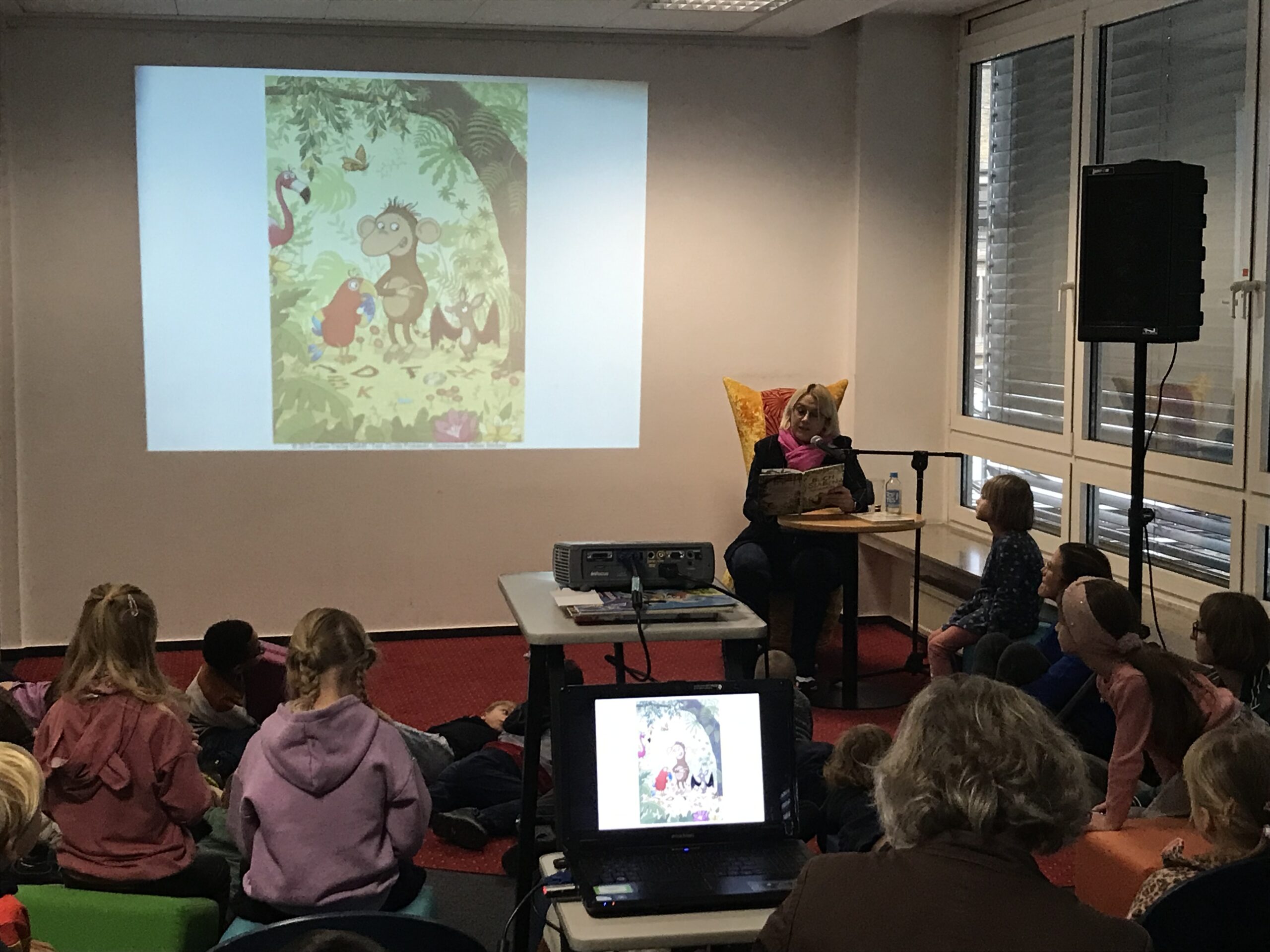 Den Schülerinnen und Schülern gefiel die Aktion sehr. Während die Oberbürgermeisterin vorlas, hörten die Kinder gespannt zu. „Mir hat das Buch mit dem Affen und den Buchstaben gefallen“, sagt eine Schülerin im Anschluss.