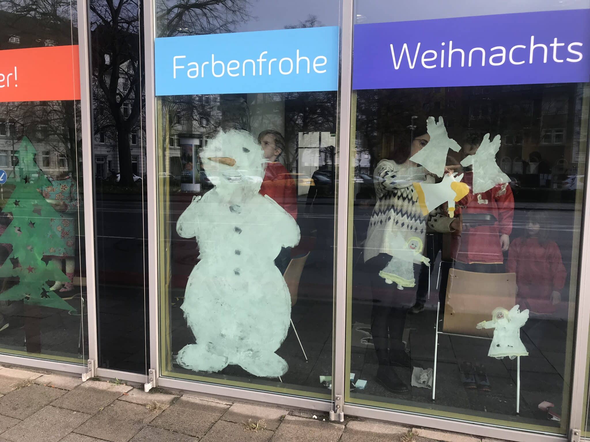 Bunte Bilder statt bunte Lichter: Das ist das Motto der Westenergie-Gruppe am Goethering. Anstelle von weihnachtlicher Beleuchtung werden dort die Fenster von Kindern bemalt.