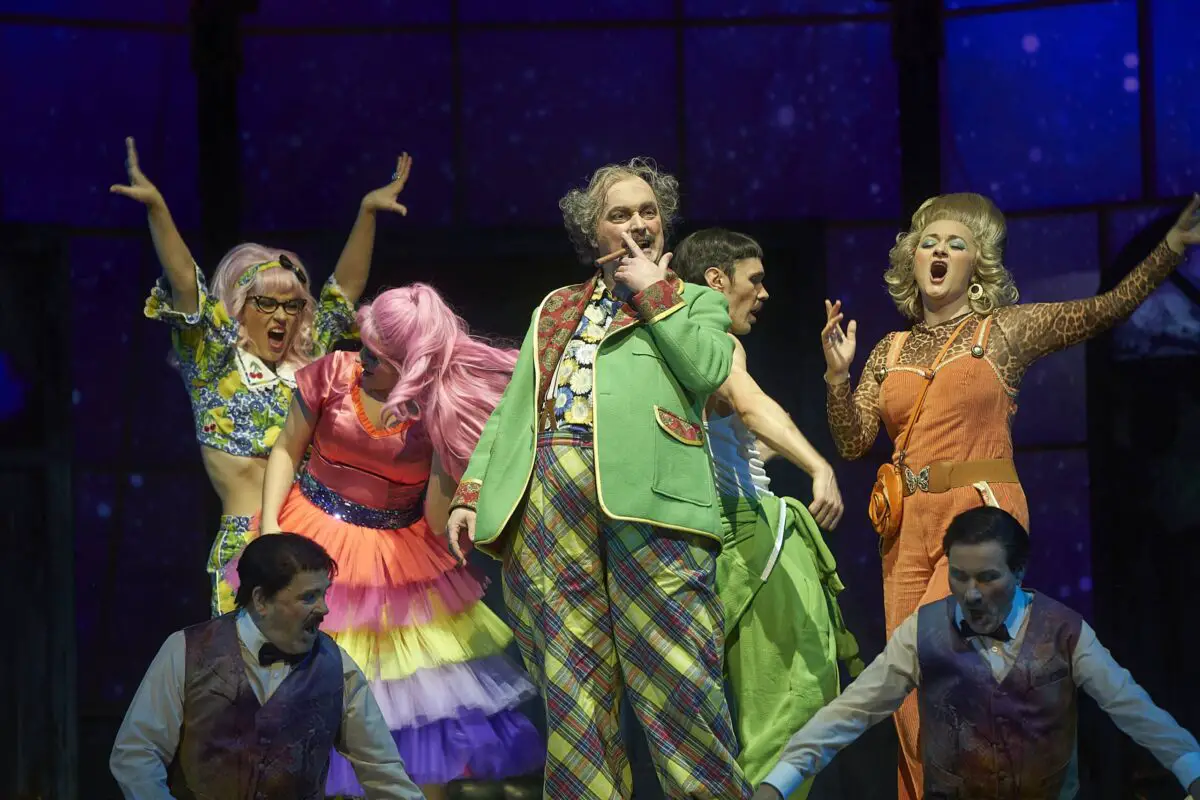 Das Bühnen- und Kostümbild wird von bunten Farben dominiert. / Foto: Matthias Horn
