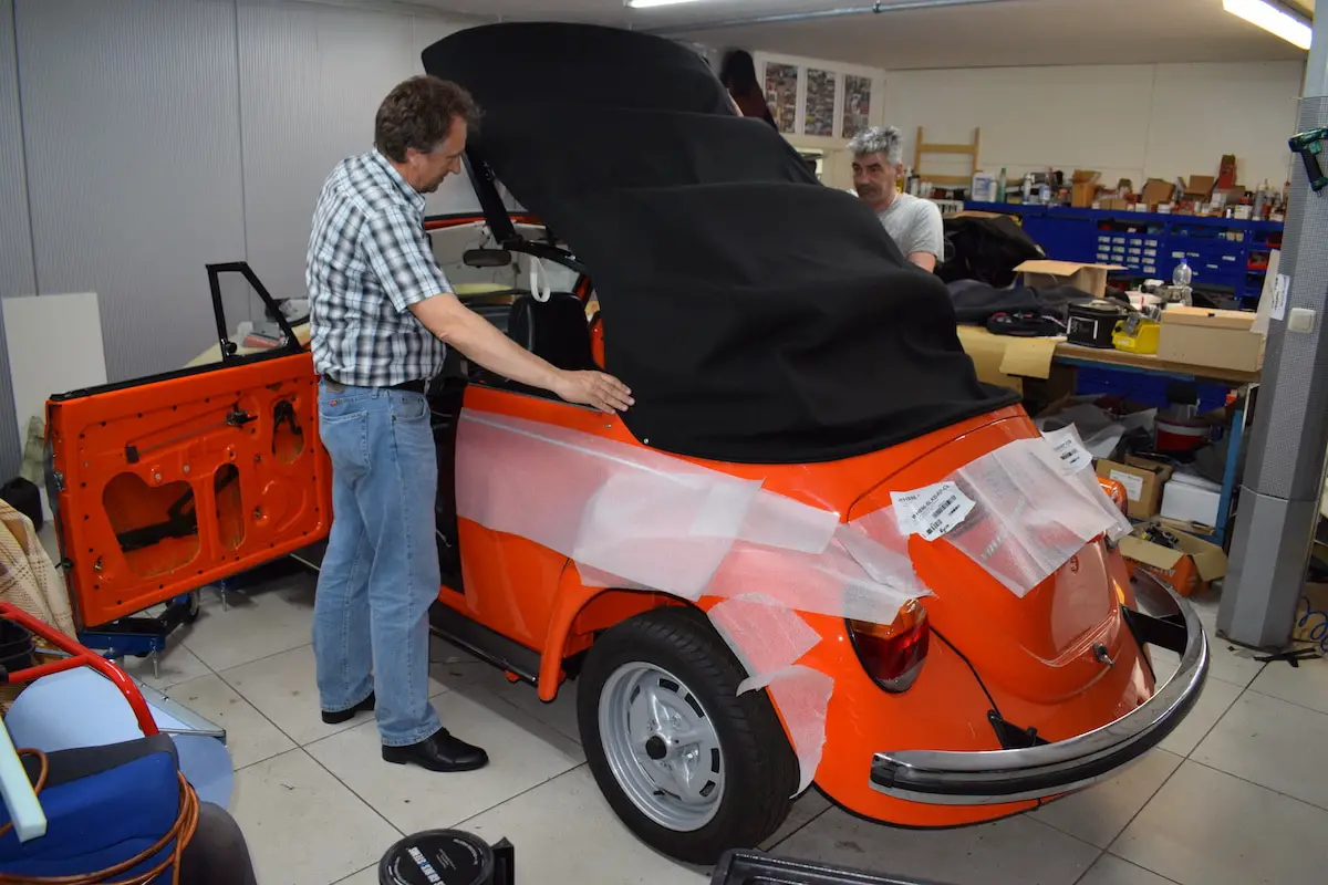 Auch zehn Jahre nach der Karmann-Schließung werden in Osnabrück noch Cabrioverdecke gefertigt. Jörg Dilge hat mit anderen Karmann-Spezialisten das Osnabrücker Cabriozentrum gegründet, und beliefert seither Kunden aus der ganzen Welt.