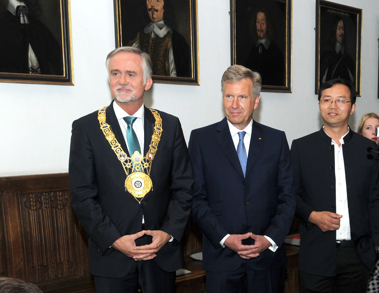 Christian Wulff, Bundespräsident a. D., hat eine chinesische Nachwuchsdelegation in seine Heimatstadt eingeladen. Oberbürgermeister Wolfgang Griesert empfing sie am Dienstagvormittag im Friedenssaal.