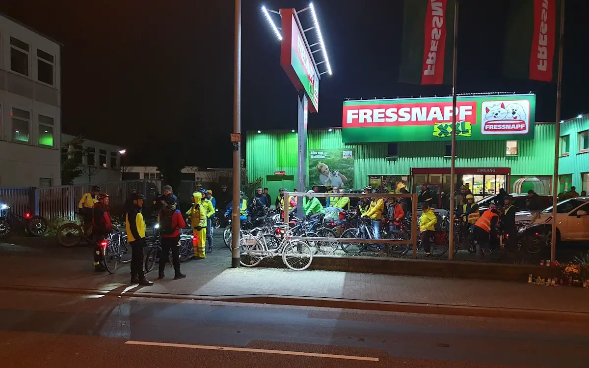 Zwei Wochen nach dem tödlichen Unfall an der Pagenstecher Straße, bei dem eine 18-jährige Radfahrerin unter einen LKW geriet, führte die regelmäßig am letzten Freitag des Monats stattfindende Critical Mass Tour am Unfallort vorbei.