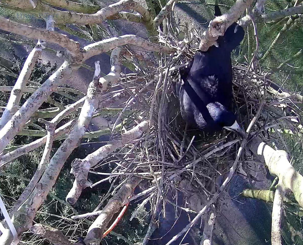 Doch als die Kamera wieder in Betrieb war, zeigte sich am 26. Februar eine überraschende Entwicklung: Das bereits weitgehend fertig gestellte Nest war verschwunden. Offensichtlich hatten andere Brutpaare aus der Kolonie es abgeräumt, um sich selbst ohne großen Aufwand Nistmaterial zu verschaffen. „Mathilde“ und ihr Partner ließen sich dadurch nicht entmutigen und haben inzwischen damit begonnen, ein neues Nest herzurichten. Diese Bauaktivitäten kann man jetzt direkt über die Kamera verfolgen, ab Mitte März liegt dann vielleicht schon das erste Ei im Nest. Sobald das Brutgeschäft beginnt, übernimmt allein das Männchen die Versorgung der Partnerin und später des Nachwuchses mit Nahrung. Etwa ab Mitte Mai werden die Jungen flügge sein.
