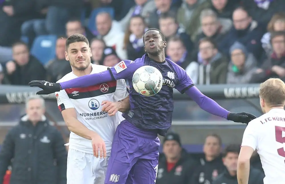 Zahlen, Daten & FaktenZuschauer: 15.313, davon 1.500 aus Nürnberg Tore: VfL Osnabrück: Körber – Gugganig, van Aken, Wolze – Ajdini, Taffertshofer (86. Henning), Heyer, Schmidt (67. Ceesay) – Ouahim, Álvarez – Girth (86. Heider) FCN: Mathenia – Sorg, Handwerker, Mavropanos, Markreiter – Geis, Nürnberger (86. Heise) – Hack, Behrens, Schleusener (76. Erras) – Zrelák (86. Dovedan) Schiedsrichter: Tobias Reichel (Stuttgart) |