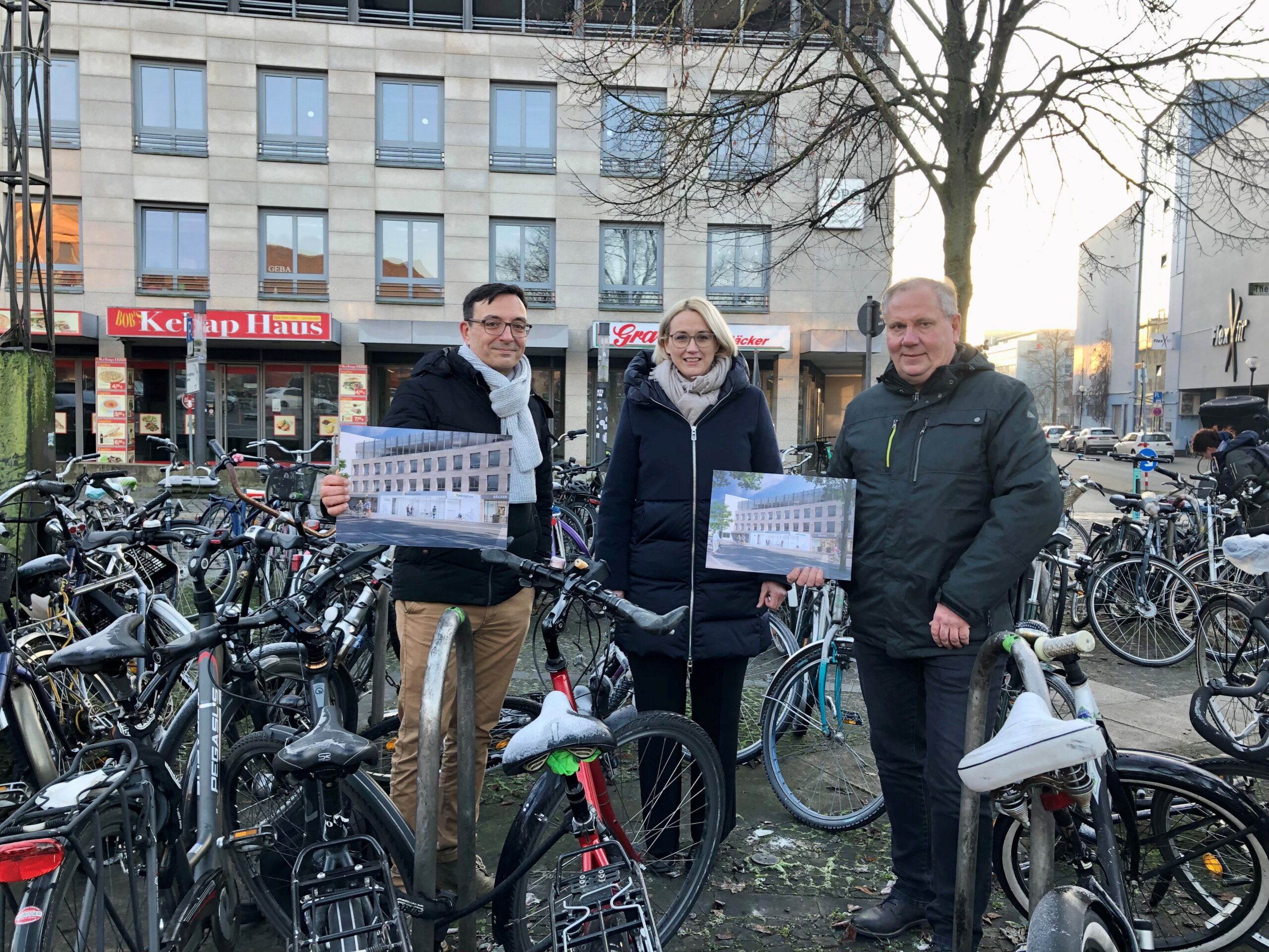 Der Baubeginn für die neue Radstation ist für Mitte Januar geplant, eröffnet werden kann voraussichtlich Ende des Jahres 2022. Passend zum geplanten Baustart ist der Förderbescheid der Landesnahverkehrsgesellschaft Niedersachsen (LNVG) über 1,3 Millionen Euro bei der Stadt Osnabrück eingetroffen. „Die neue Radstation ist ein weiterer Baustein auf dem Weg zu einer nachhaltigen Mobilität in Osnabrück“, sagt Oberbürgermeisterin Katharina Pötter und führt aus: „Die Verbindung zwischen Bahn und Rad ist sehr attraktiv. Gleichzeitig wird der Bahnhofsvorplatz schöner. Wenn die Räder sicher in der Garage parken, haben wir mehr Möglichkeiten, den Vorplatz anders zu gestalten und die Aufenthaltsqualität deutlich zu erhöhen.“