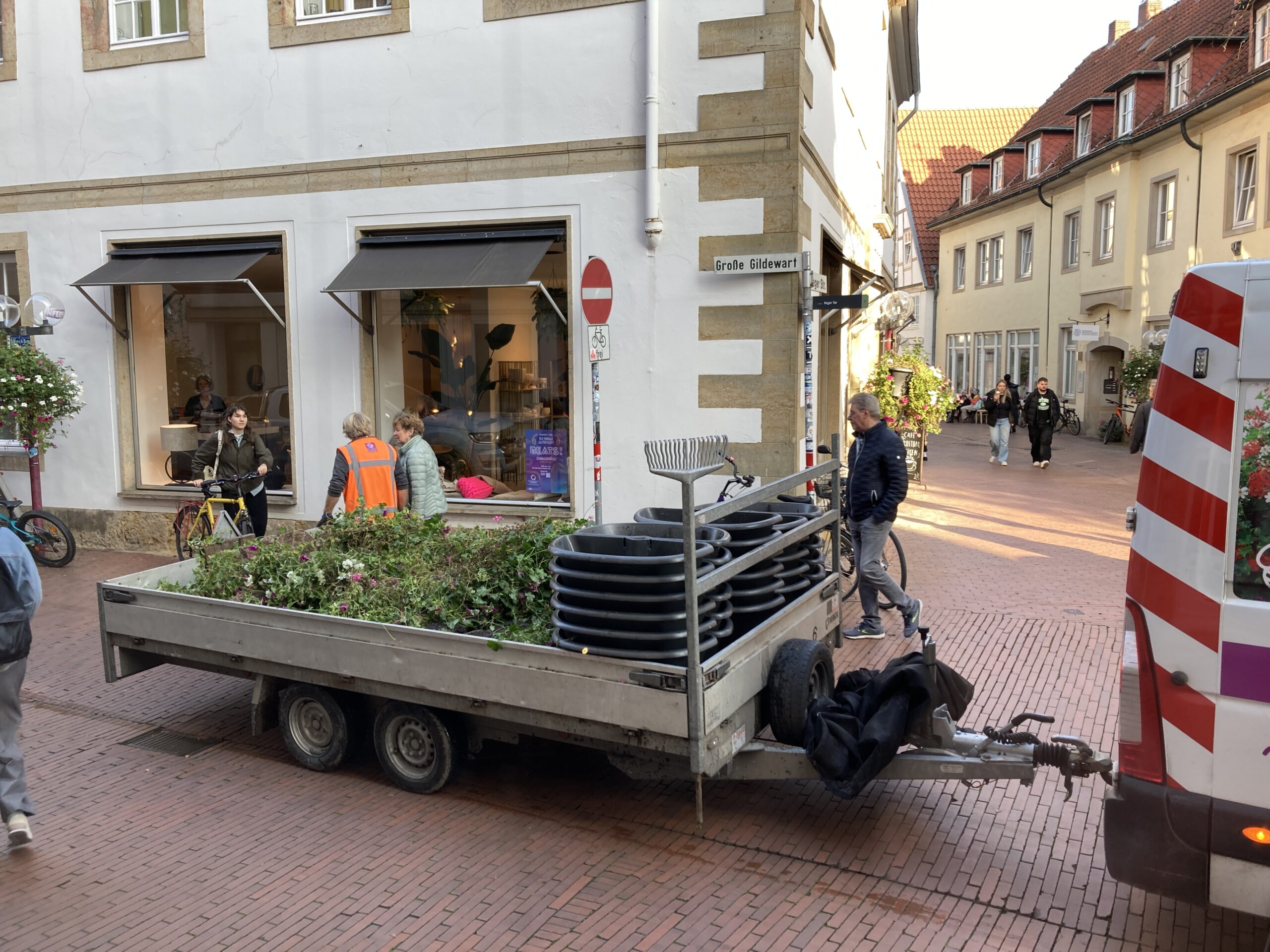 Am Mittwoch (23. Oktober) wurden die 112 Blumenkübel, die seit dem Frühjahr die Osnabrücker Innenstadt verschönerten, abgebaut. Die Aktion von Marketing Osnabrück und Osnabrücker City Marketing brachte über Monate hinweg Farbe und Natur in das Stadtbild und sollte Besucherinnen und Besucher zum Verweilen einladen.