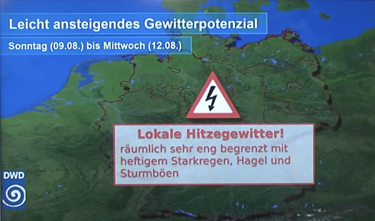 Der Deutsche Wetterdienst prognostiziert eine Fortdauer das hochsommerlichen Wetters, allerdings kann es in den kommenden Tagen auch zu Starkregen und Hitzegewittern kommen.