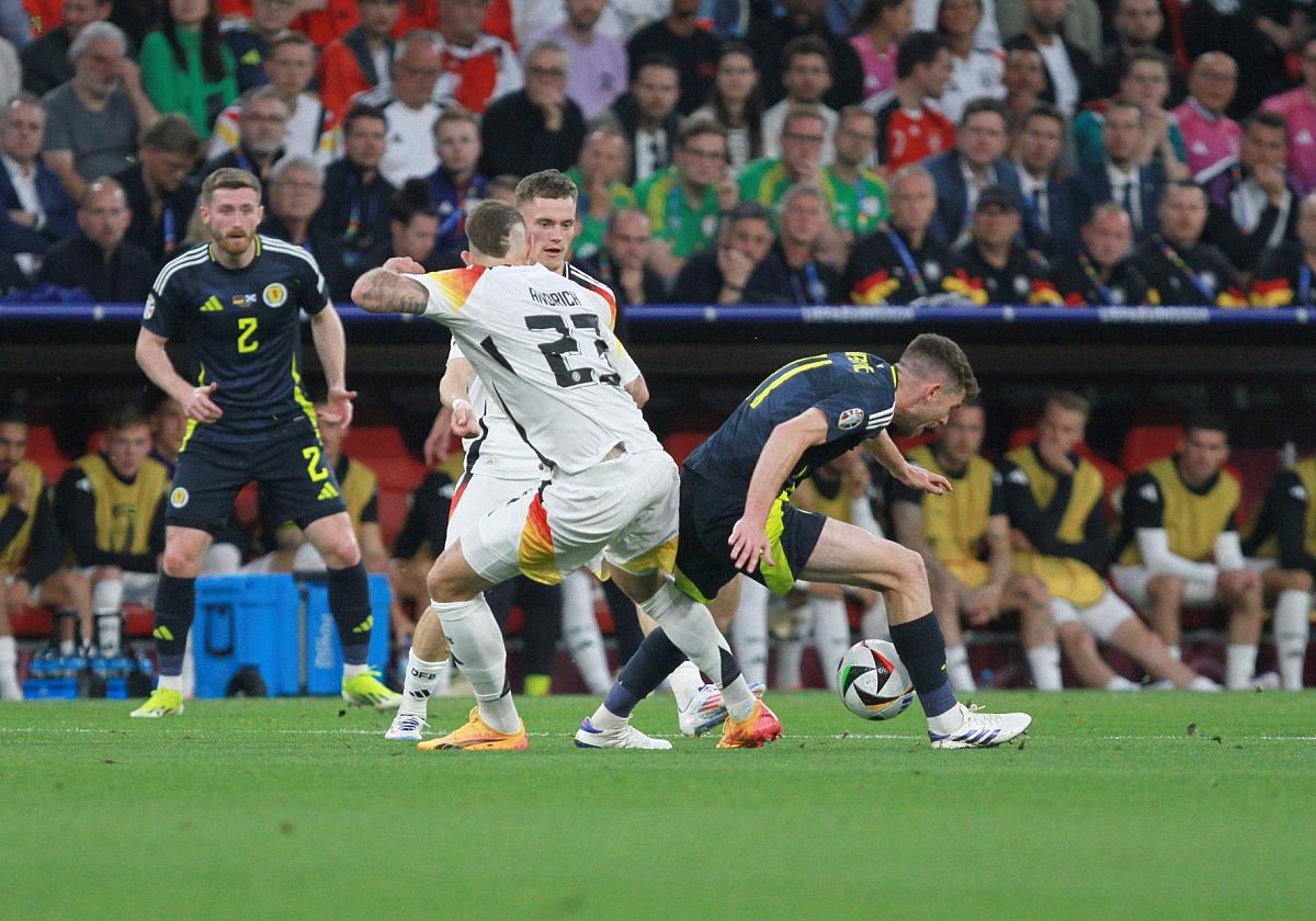 Bereits in der 19. Minute konnte der Bayern-Angreifer Jamal Musiala nachlegen. Nach einer Vorlage von Havertz schoss er kräftig aus kurzer Distanz und ließ dem schottischen Torhüter Angus Gunn keine Chance. Kurz vor der Halbzeitpause sorgte Kai Havertz mit einem Strafstoß für die 3:0 Vorentscheidung. Ryan Porteous sah wegen eines Fouls bei der Entstehung des Strafstoßes die Rote Karte.