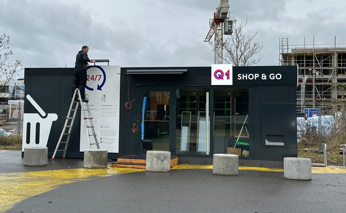 Kurz vor den Weihnachtstagen wurde der Container auf dem „Multifunktionsplatz“ an der Lise-Meitner-Straße aufgestellt, nach einer internen Testphase wird Q1 Shop & Go dann ab dem 2. Februar 2024 öffentlich zugänglich sein.