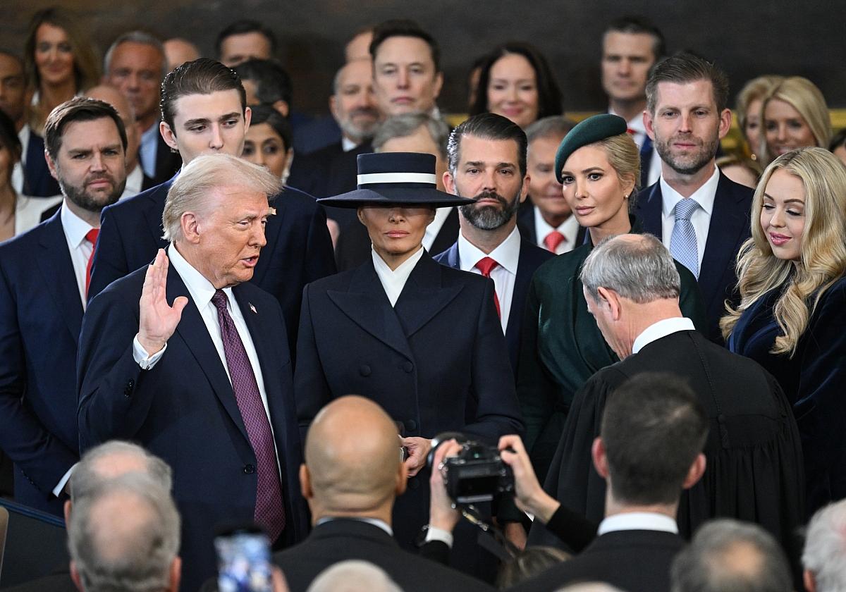 Trumps Amtseinführung fand aufgrund des kalten Wetters nicht wie üblich vor dem Kapitol, sondern in der Rotunde des Kongressgebäudes statt. Der scheidende Präsident Joe Biden und Vizepräsidentin Kamala Harris nahmen an der Zeremonie teil. Vor vier Jahren hatte Trump die Amtseinführung seines Nachfolgers Joe Biden boykottiert, da er seine Wahlniederlage nicht akzeptiert hatte.