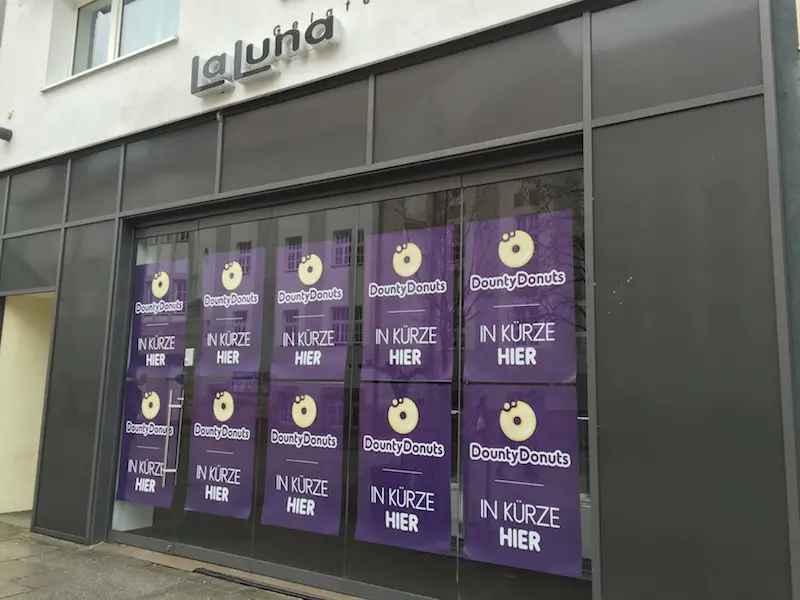 Das „La Luna“ wird dem neuen Donut-Konzept nicht weichen, wie es in einer ersten Variante dieses Artikels stand, sondern durch das Donut-Konzept ergänzt. Die „Dounty Donuts“ werden ab März zusammen mit dem La-Luna-Eis in einem Ladenlokal angeboten, so eine Sprecherin des Betreibers heute im Gespräch mit unserer Redaktion.
