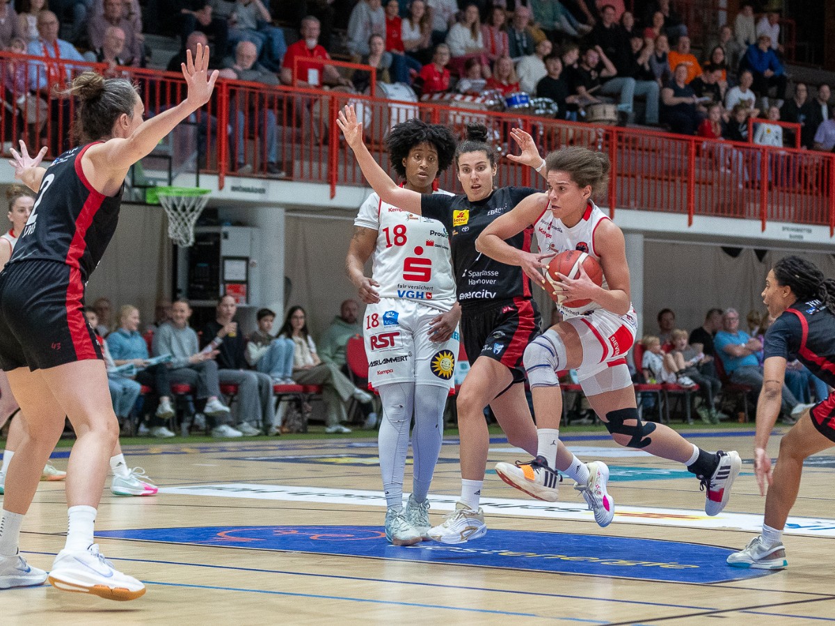 Nach der Pause blieben die Luchse zunächst das stärkere Team, während die Panthers weiterhin nach Lösungen suchten. Doch beim Stand von 36:48 gelang den Gastgebern eine kleine Serie von vier Punkten in Folge, woraufhin Hannover ein Timeout nahm. Dies schien den Panthers zusätzlichen Auftrieb zu geben: Plötzlich spielten sie wie entfesselt und arbeiteten sich bis zum Viertelende auf 49:53 heran.