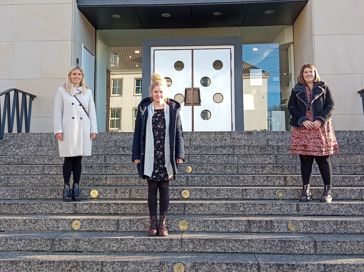 Natalie Wiehenkamp, Nele Mausolf und Eeske Märte Teipen freuen sich über ihre Sterne auf dem Azubi „Walk of Fame“. / Foto: Brockfeld