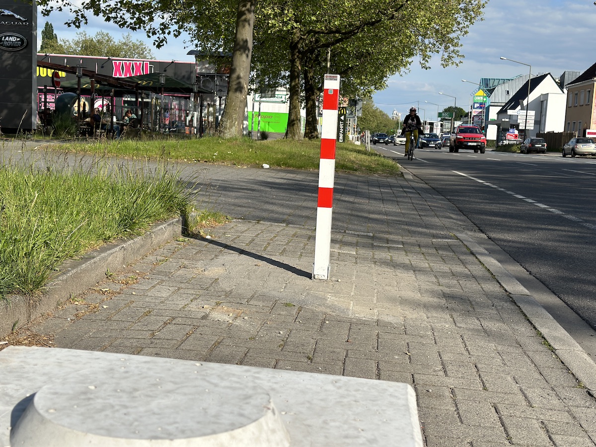 An der Stelle wurde nun ein mit einem Schloss versehener Klapp-Pfahl installiert, der bei Bedarf für den Dienstwagen der mobilen Geschwindigkeitswächter umgelegt werden kann.