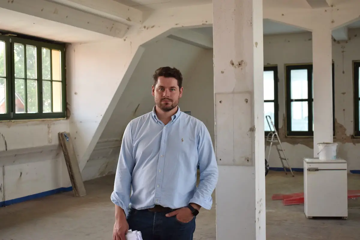 Jungunternehmer Benedictus Lingens auf der Baustelle. / Foto: Brockfeld