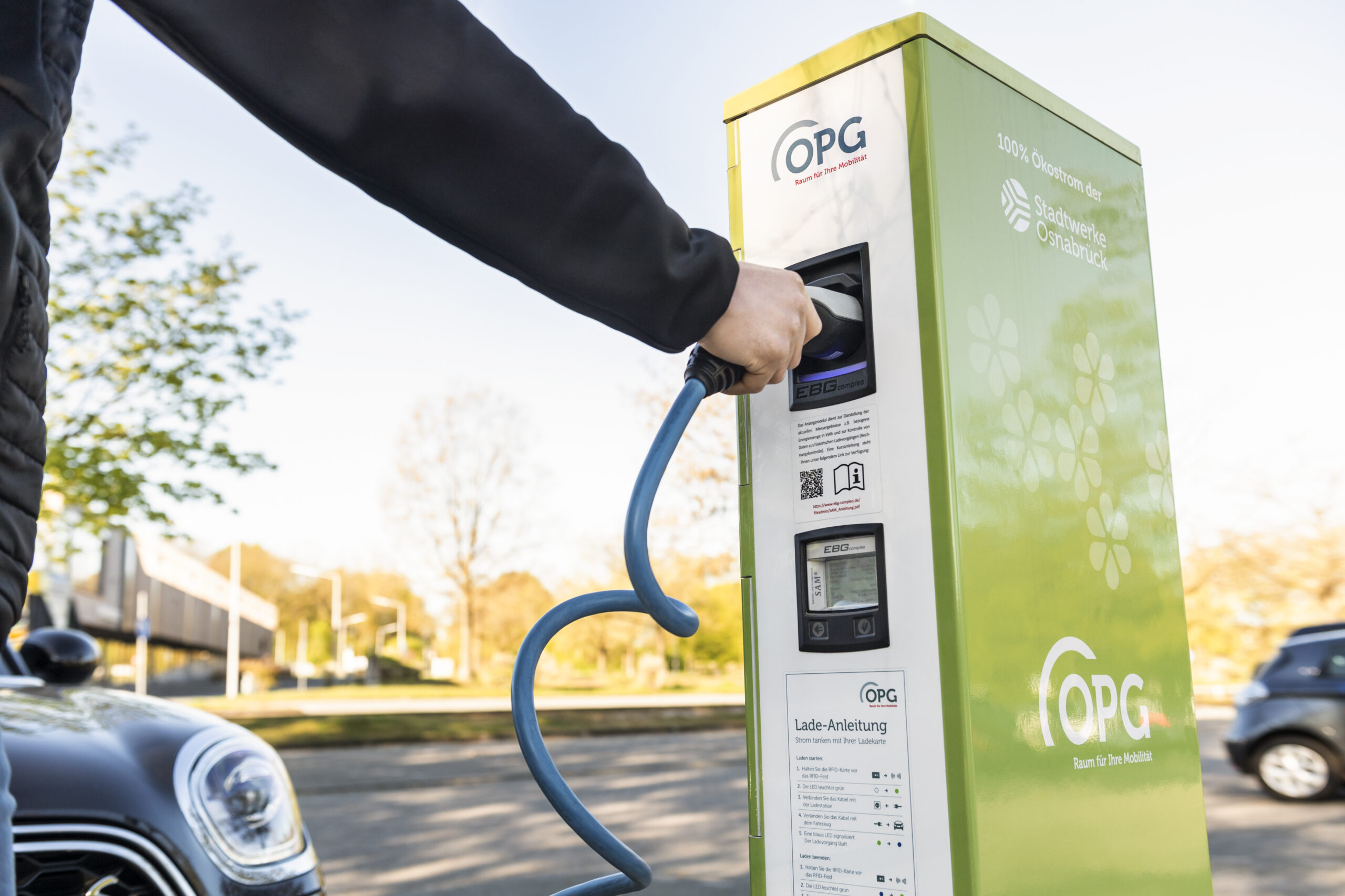 „E-Mobilität boomt – und damit auch der Bedarf an passender öffentlicher Ladeinfrastruktur mit einfachem und flexiblem Zugang“, betont OPG-Geschäftsführer Wigand Maethner. Mehr als 100 öffentliche Ladepunkte betreibt die OPG mittlerweile in Osnabrück. In den kommenden Monaten sollen – gefördert vom Bund – knapp 50 weitere dazu kommen. „Und zwar an geeigneten Stellen und Quartieren im gesamten Stadtgebiet“, so Maethner weiter. Gemessen an der Einwohnerzahl wird Osnabrück somit zu den Städten mit der höchsten Dichte an öffentlichen Ladepunkten zählen.
