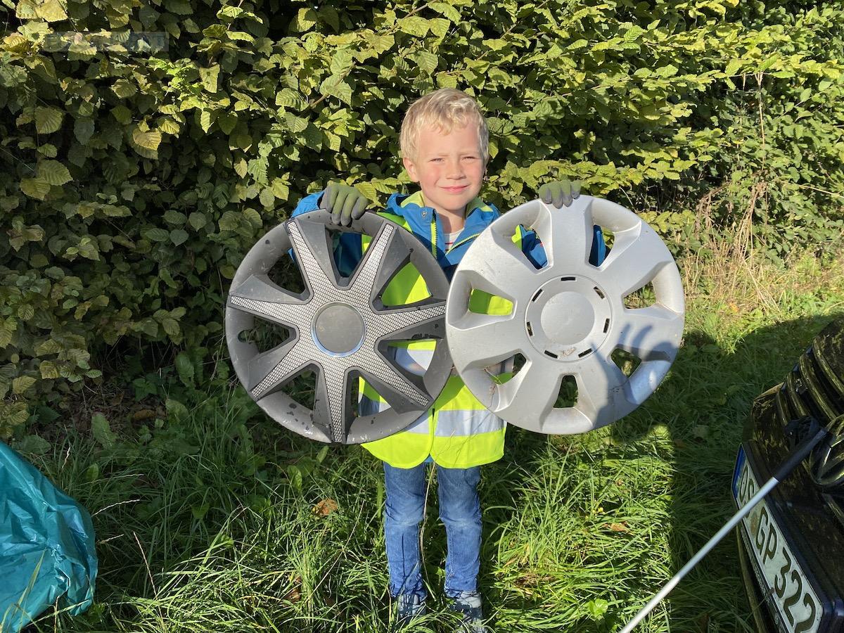Bei der letzten Sammelaktion packte auch der vierjährige Bjarne aus Hagen a.T.W. ordentlich mit an / Foto: D. Pommer / AWIGO