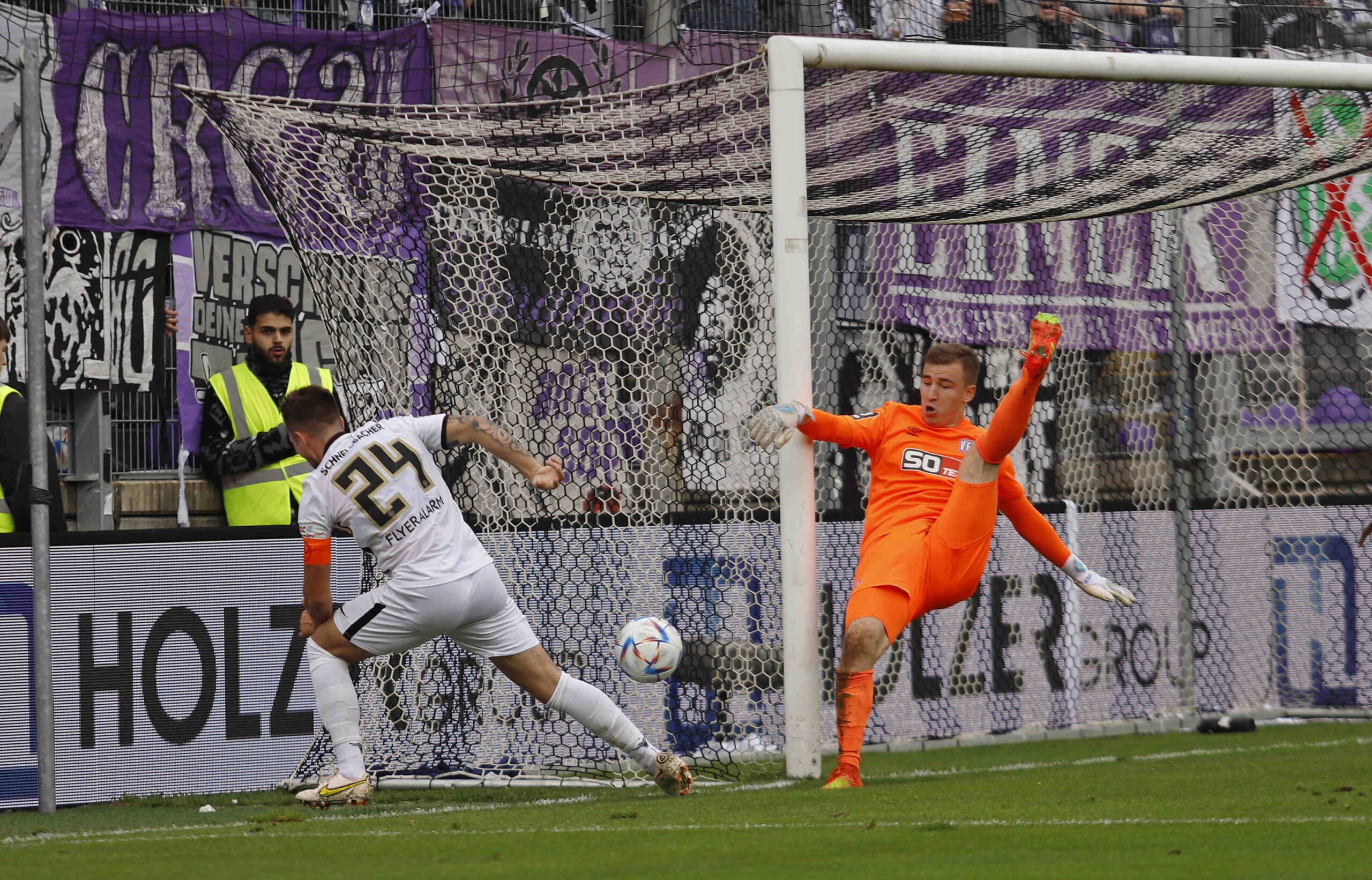 Der VfL präsentierte sich im Saarland schwach wie selten in einer generell schon nicht sonderlich guten Saison. Nur noch zwei Punkte trennt die Osnabrücker als Tabellenfünfzehnter mittlerweile von einem Abstiegsrang. Dass es gegen Elversberg nicht so richtig peinlich wurde, ist dabei einzig Torwart Adamczyk zu verdanken. Der 20-Jährige war bei allen Toren machtlos und empfahl sich mit zahlreichen tollen Paraden für weitere Einsätze. Am Montag (31. Oktober) empfängt der VfL Osnabrück den Halleschen FC. Bei ähnlich schwacher Leistung wie heute droht die vierte Niederlage in Folge.