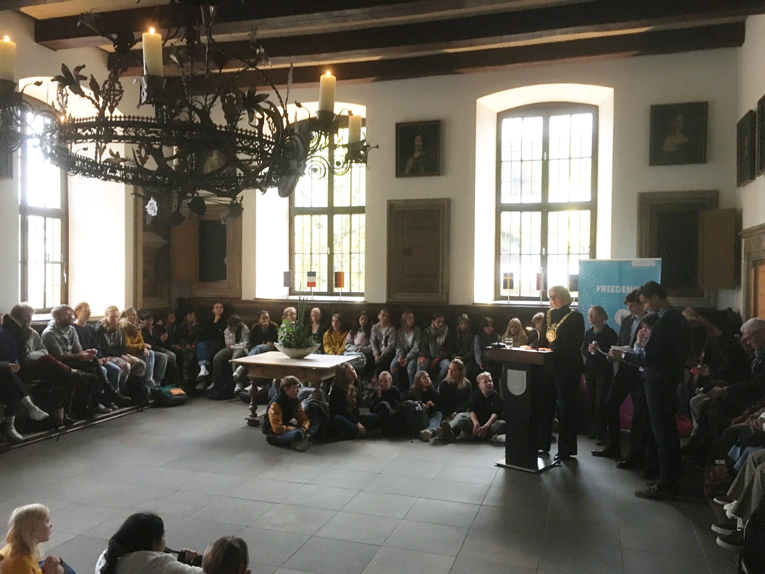 Vom 21. bis 26. Oktober 2023 sind Kinder-, Jugend- und Studierendenchöre aus den Osnabrücker Partnerstädten Angers, Greifswald und Haarlem sowie aus Stockholm in unserer Friedensstadt zu Gast. Oberbürgermeisterin Katharina Pötter empfing die jungen Sängerinnen und Sänger gestern Abend im Friedenssaal des Osnabrücker Rathauses.